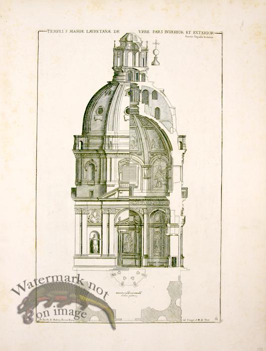 Copper plate engravings of Italian Architecture published in 1721 by Rossi. Nice large size on heavy stock hand made paper. 18.75 inches by 14 inches.