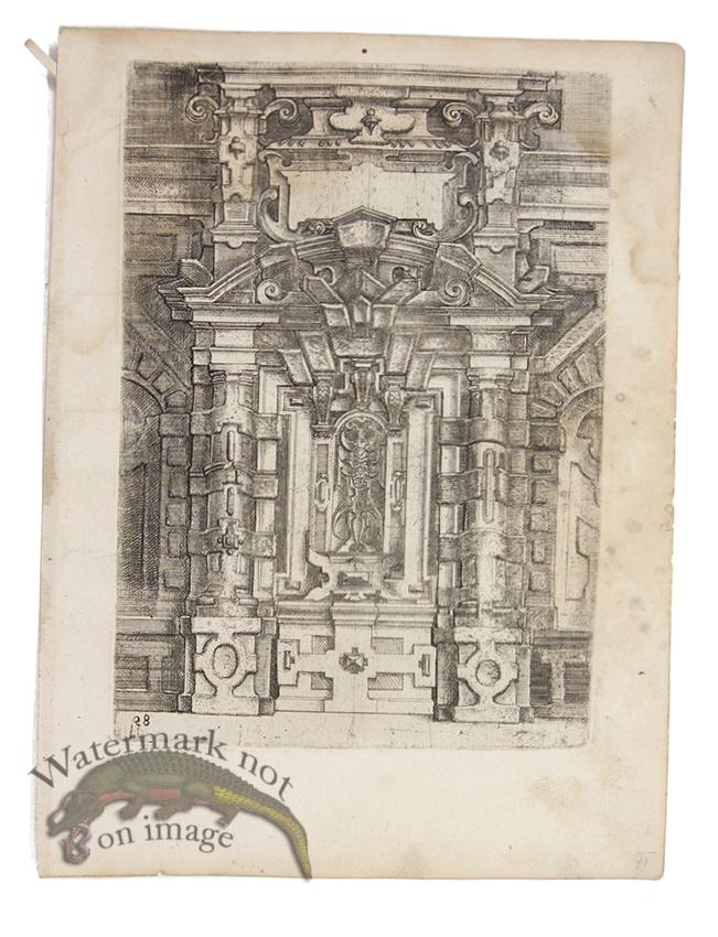 Antique prints from Architectura by Wendel Dietterlin. These copper plate engravings printed on handmade chainlaid paper were published in Strassburg in 1598. Most of his paintings are now lost, and he is best known for his treatise on architectural ornament, Architectura, published in its final edition in Nuremberg in 1598. Each print is approximately 12.25 x 9.25.