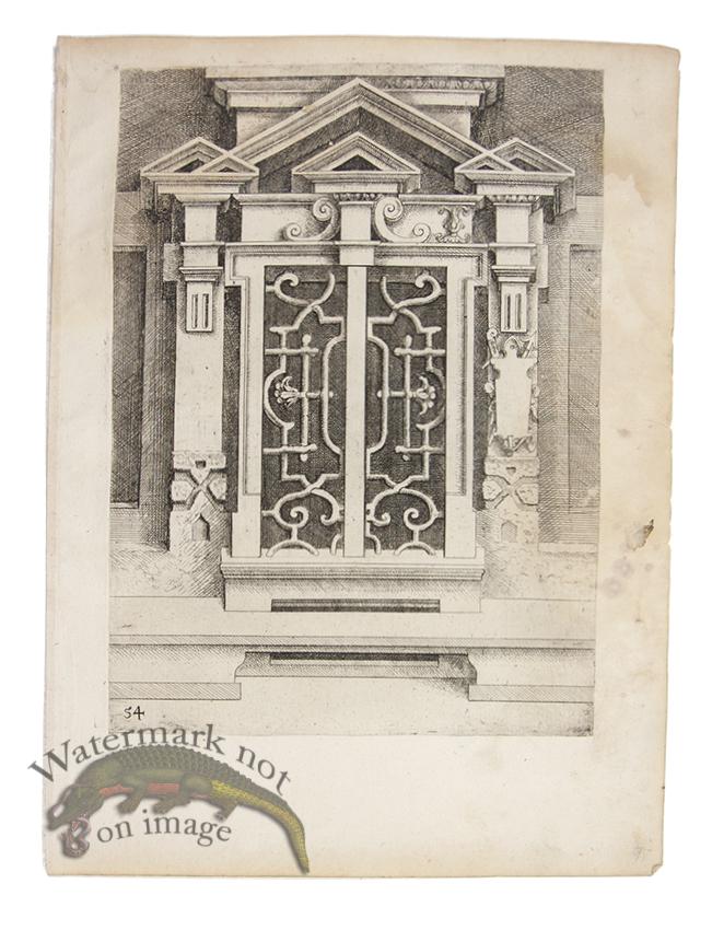 Antique prints from Architectura by Wendel Dietterlin. These copper plate engravings printed on handmade chainlaid paper were published in Strassburg in 1598. Most of his paintings are now lost, and he is best known for his treatise on architectural ornament, Architectura, published in its final edition in Nuremberg in 1598. Each print is approximately 12.25 x 9.25.