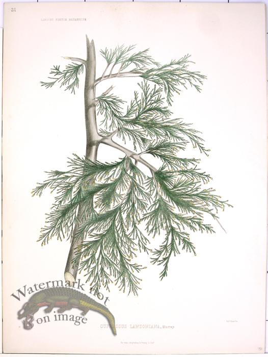 This Series Of Prints Comes From 'pinetum Britannicum' By W. Richardson, Ravenscroft, And Lawson  Printed From 1863-1884, London. This Series Illustrates A Collection Of Pines, Many Of Which Were Transplanted To The Isle Of Wight By Queen Victoria Onto Her Osbourne Estate. The Queen Though So Highly Of This Series That The She Became Its' First Subscriber Followed By Napoleon Iii. This Victorian Masterpiece Of Hand Coloured Lithography Took Almost 40 Years To Complete.  The Pinetum Britannicum Is Considered To Be The The Most Important Study Of The English Naturalised Conifers Ever Produced.