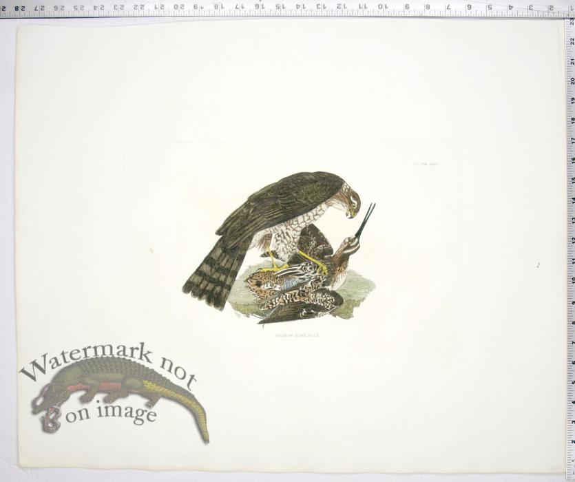 Hand colored copper plate engravings on hand made chain laid paper. The paper is from the same mill as the Audubon's Birds of America series and each print has a watermark with  J. Whatman and or Turkey Mill and a date between 1816 and 1864 as we have prints from different editions(the earlier prints tend to be on smaller and darker paper and you can call for more info). Prideaux John Selby lived from 1788 to 1867 and is considered one of the best ever bird artists, together with John James Audubon, his contemporary, and John Gould. Like Gould and Audubon he showed the birds with scientific accuracy in natural settings. Like Audubon, he produced images life sized, though the paper size is of smaller scale. Selby engraved many of the plates for his large folio set himself with William Lizar (engraved first 10 Audubon Birds) engraving the rest. The conditions of the prints vary(most in good condition) and can be seen in the photographs for the most part. Additional information on the prints can be gained by calling or emailing us. Please click on the print to see a larger image.