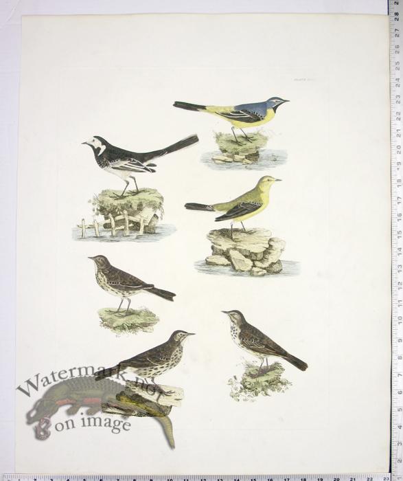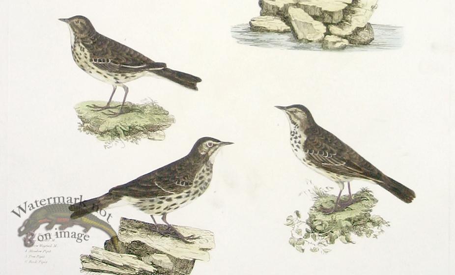 Hand colored copper plate engravings on hand made chain laid paper. The paper is from the same mill as the Audubon's Birds of America series and each print has a watermark with  J. Whatman and or Turkey Mill and a date between 1816 and 1864 as we have prints from different editions(the earlier prints tend to be on smaller and darker paper and you can call for more info). Prideaux John Selby lived from 1788 to 1867 and is considered one of the best ever bird artists, together with John James Audubon, his contemporary, and John Gould. Like Gould and Audubon he showed the birds with scientific accuracy in natural settings. Like Audubon, he produced images life sized, though the paper size is of smaller scale. Selby engraved many of the plates for his large folio set himself with William Lizar (engraved first 10 Audubon Birds) engraving the rest. The conditions of the prints vary(most in good condition) and can be seen in the photographs for the most part. Additional information on the prints can be gained by calling or emailing us. Please click on the print to see a larger image.