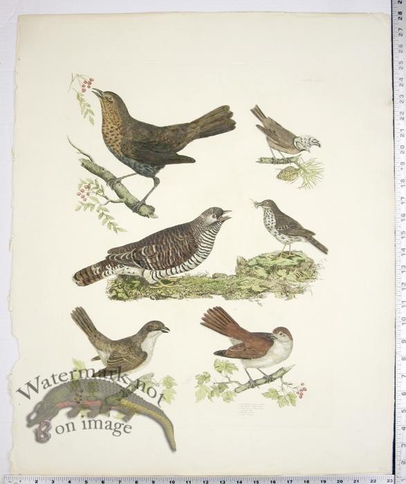 Hand colored copper plate engravings on hand made chain laid paper. The paper is from the same mill as the Audubon's Birds of America series and each print has a watermark with  J. Whatman and or Turkey Mill and a date between 1816 and 1864 as we have prints from different editions(the earlier prints tend to be on smaller and darker paper and you can call for more info). Prideaux John Selby lived from 1788 to 1867 and is considered one of the best ever bird artists, together with John James Audubon, his contemporary, and John Gould. Like Gould and Audubon he showed the birds with scientific accuracy in natural settings. Like Audubon, he produced images life sized, though the paper size is of smaller scale. Selby engraved many of the plates for his large folio set himself with William Lizar (engraved first 10 Audubon Birds) engraving the rest. The conditions of the prints vary(most in good condition) and can be seen in the photographs for the most part. Additional information on the prints can be gained by calling or emailing us. Please click on the print to see a larger image.