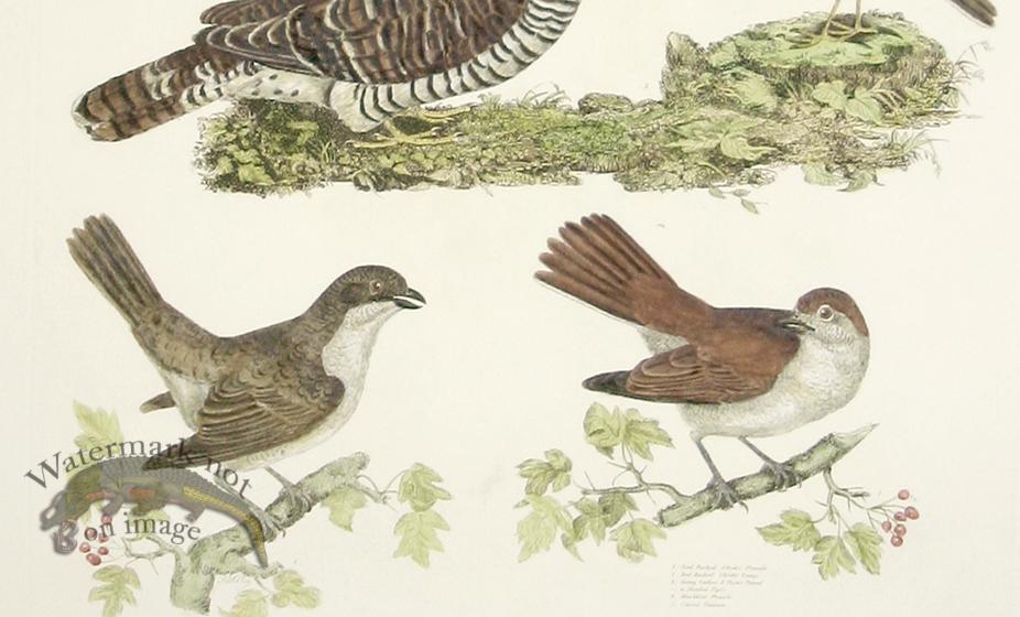 Shrike-M/F; Cuckoo; Blackbird; Crested Titmouse