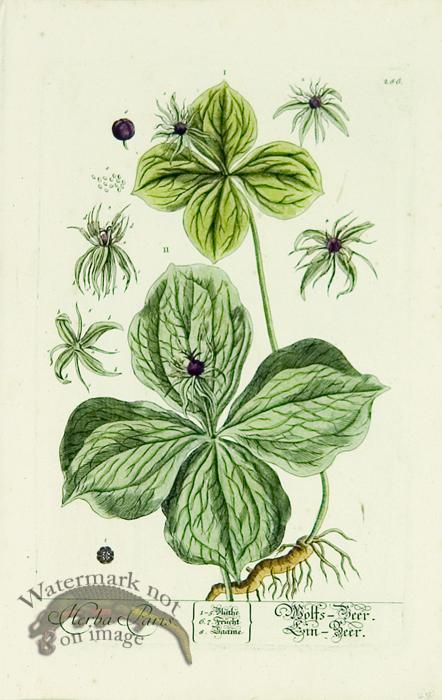 Hand colored copper plate engravings on hand made chain laid paper. Published in Germany in 1764 with all original watercolor work. Illustrated by Elisabethae Blackwell and titled Herbarium Selectum Emendatum Et Avctum Centuria. Size: 14.2 x 9.2 inches.