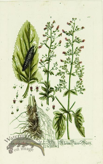 Hand colored copper plate engravings on hand made chain laid paper. Published in Germany in 1764 with all original watercolor work. Illustrated by Elisabethae Blackwell and titled Herbarium Selectum Emendatum Et Avctum Centuria. Size: 14.2 x 9.2 inches.