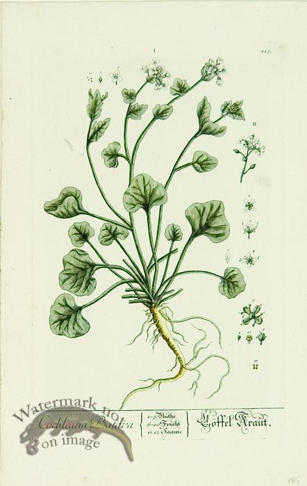 Hand colored copper plate engravings on hand made chain laid paper. Published in Germany in 1764 with all original watercolor work. Illustrated by Elisabethae Blackwell and titled Herbarium Selectum Emendatum Et Avctum Centuria. Size: 14.2 x 9.2 inches.