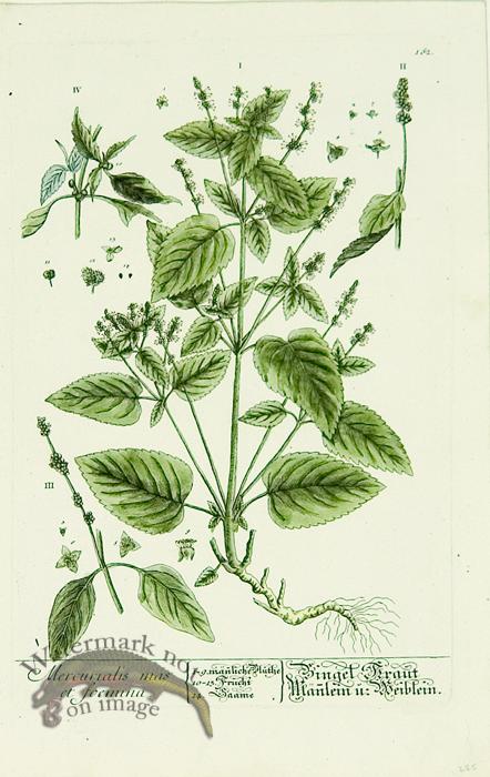 Hand colored copper plate engravings on hand made chain laid paper. Published in Germany in 1764 with all original watercolor work. Illustrated by Elisabethae Blackwell and titled Herbarium Selectum Emendatum Et Avctum Centuria. Size: 14.2 x 9.2 inches.