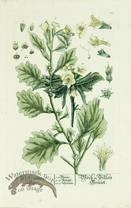 Hand colored copper plate engravings on hand made chain laid paper. Published in Germany in 1764 with all original watercolor work. Illustrated by Elisabethae Blackwell and titled Herbarium Selectum Emendatum Et Avctum Centuria. Size: 14.2 x 9.2 inches.