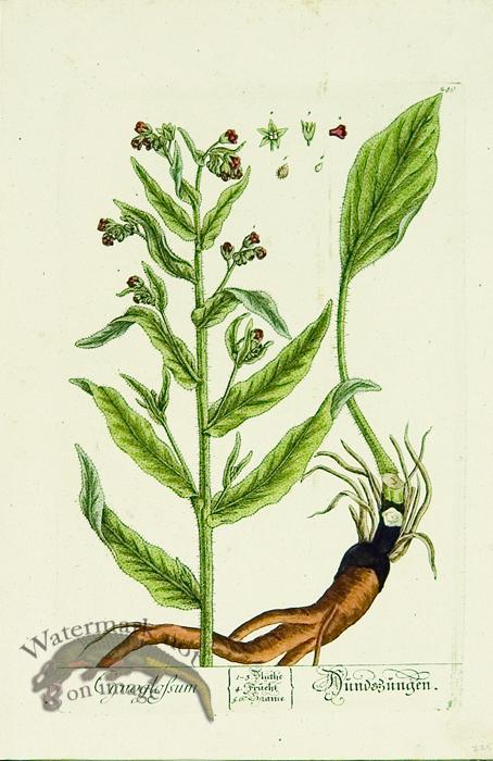 Hand colored copper plate engravings on hand made chain laid paper. Published in Germany in 1764 with all original watercolor work. Illustrated by Elisabethae Blackwell and titled Herbarium Selectum Emendatum Et Avctum Centuria. Size: 14.2 x 9.2 inches.