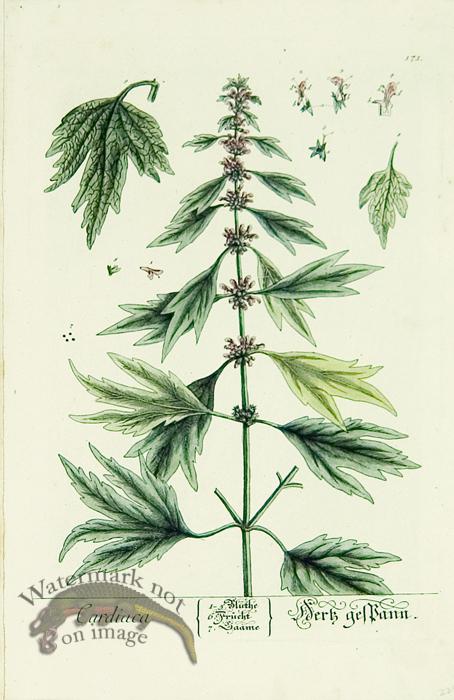 Hand colored copper plate engravings on hand made chain laid paper. Published in Germany in 1764 with all original watercolor work. Illustrated by Elisabethae Blackwell and titled Herbarium Selectum Emendatum Et Avctum Centuria. Size: 14.2 x 9.2 inches.