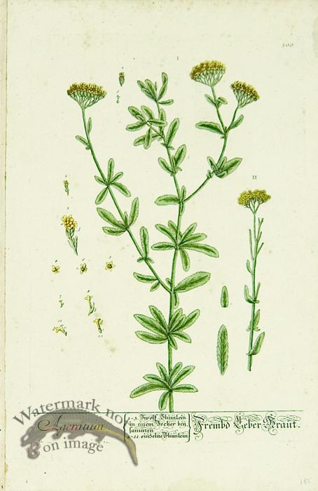 Hand colored copper plate engravings on hand made chain laid paper. Published in Germany in 1764 with all original watercolor work. Illustrated by Elisabethae Blackwell and titled Herbarium Selectum Emendatum Et Avctum Centuria. Size: 14.2 x 9.2 inches.