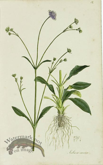 Hand colored stone lithographs from a German Medicinal Plant work published in 1828. All color work is original and what make this series so nice apart from its age is the fact they are so large. The print size is 18 inches tall and 11.2 inches wide (some are half inch larger). A previous owner used this book and on many images under the printed name is a hand written name of the flower in what appears to be German.