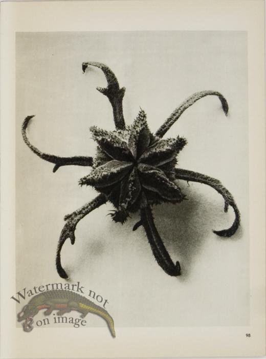 Karl Blossfeldt (June 13, 1865 ? December 9, 1932 - age 67) was a German photographer,artist, sculptor and teacher who lived and worked in Berlin, Germany. He is best known for his work Urformen der Kunst first published in 1929 which was a close up study of plants through photography. He was able to get his amazing photos through the use of a home made camera that allowed him to magnify objects up to 30 times the actual size. "Urformen der Kunst"(The original art) is an amazing collection of lithographs. The series we have for sale here is from the 1942 edition. Each plate is 12.75 inches tall and 9.4 inches wide.