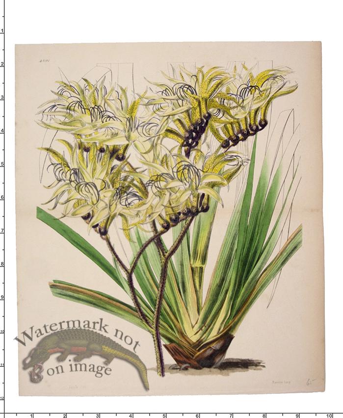 Original antique prints, hand colored engravings and lithograph prints from the William Curtis Botanical Magazine. The date on this publication spans from the 1780 through the 1890 and is even still in print today. Most prints are from the mid to late 1800s and we can give a more exact description upon request. We went through a few hundred Curtis Botanical prints to bring you the best double-folds you can find. A double-fold is a print that has been folded in half or thirds in order to fit into the size of the publication. These fold lines do not distract from the print and the size of these flowers is brilliant. Due to the fact this publication spans in time and printing type the sizes also vary slightly. When framed they will make a great set with the small size variations being of no concern. In order to place such a large volume of these prints online we have given a general size of between 10.4 to 12.4 inches by 9 to 9.5 inches. We have added a ruler onto the image so you can double check the size of these great antique flower prints.