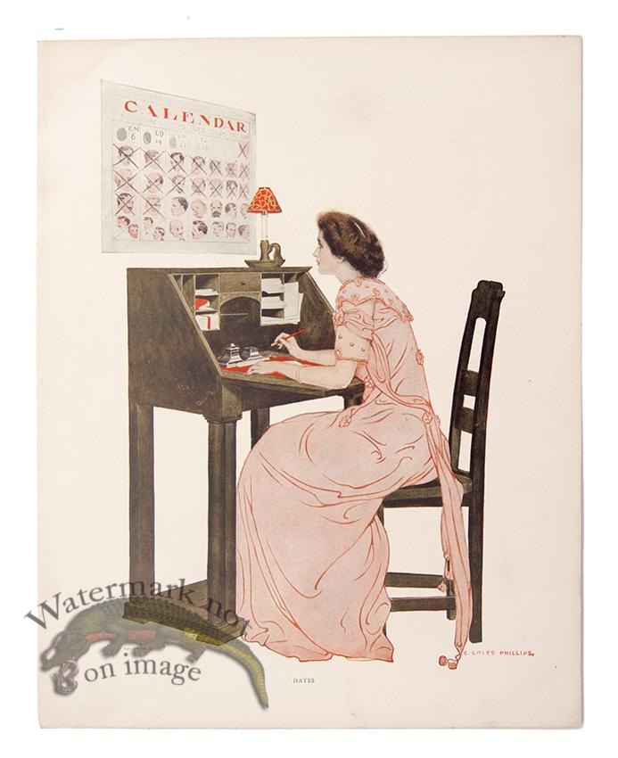 Original antique lithograph print by Cole Phillips from A Gallery of Girls published in 1911. Spotting and aging of prints should be visible in photograph. Each print measures 11.7 x 9.6 inches.