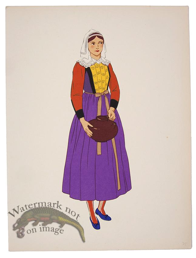 Antique prints published in 1939. These beautiful lithographs are from National Costumes of Austria, Hungary, Poland, Czechoslovakia by Lepage-Medvey. Printed on a heavy stock paper and in good condition with any spotting or aging visible in photograph. Size 9.4 x 12.4 inches.