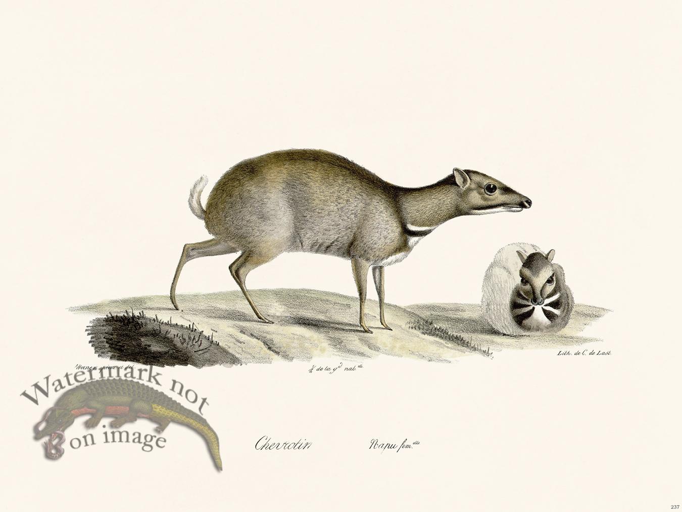 These are high-quality giclee reproductions of Cuvier’s Animals that were originally published in 1824. Cuvier’s Histoire Naturelle Des Mammiferes was one of the most important zoological works of its time and still remains one of the greatest series of mammals ever published. Our giclee reproductions retain Cuvier’s precise profile with clean backgrounds. Each of our giclee prints are printed on acid-free cotton rag paper using only archival inks that have a lightfastness of 200 years.