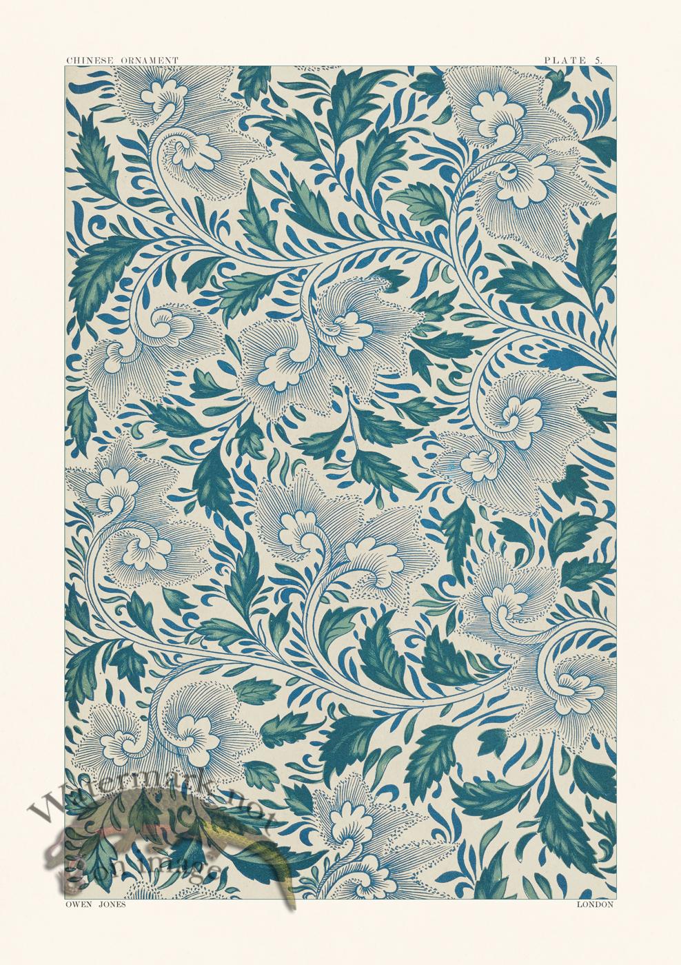 CFA Edition giclée reproduction of Plate 05 from Examples of Chinese Ornament by Owen Jones, originally published in London, England in 1867. This piece is printed on acid-free cotton rag paper using archival inks for exceptional quality and longevity.
