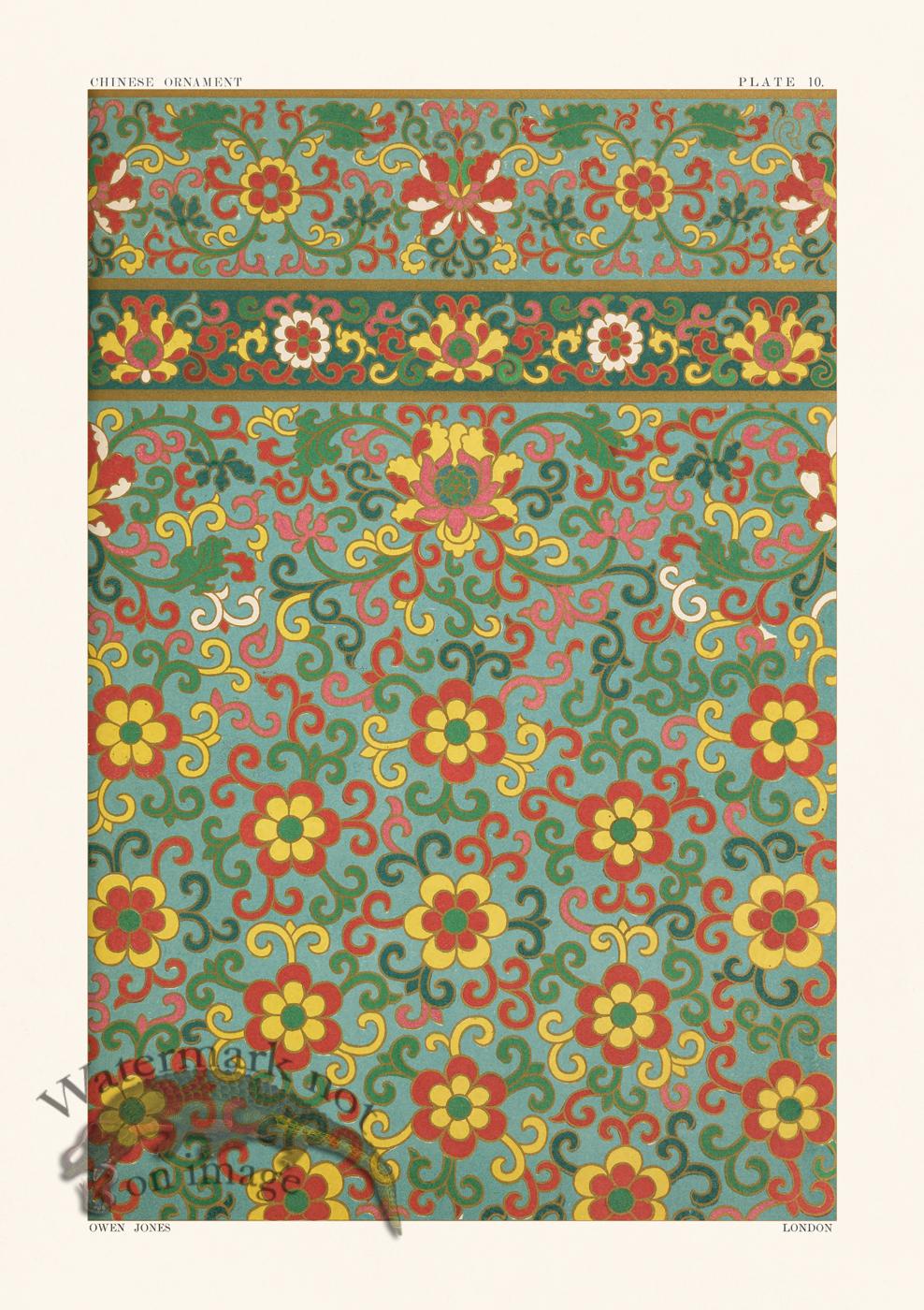 CFA Edition giclée reproduction of Plate 10 from Examples of Chinese Ornament by Owen Jones, originally published in London, England in 1867. This piece is printed on acid-free cotton rag paper using archival inks for exceptional quality and longevity.