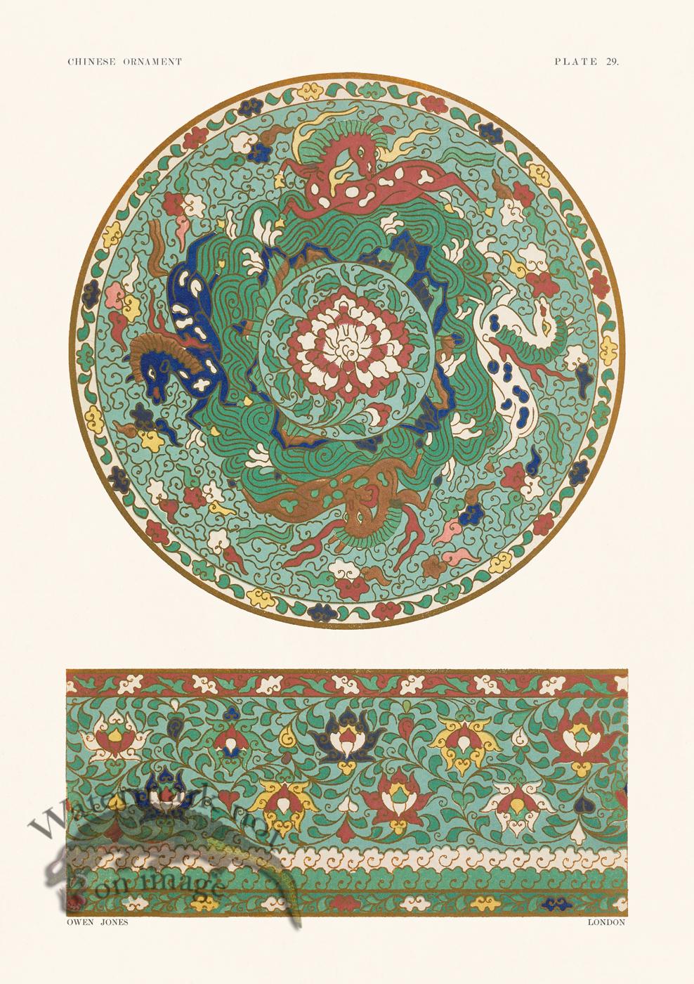 Giclee reproductions of Examples of Chinese Ornament by Owen Jones. Publisehd in London, England 1867. Printed on acid free cotton rag paper with archival inks. Print size is 12x17 inches.