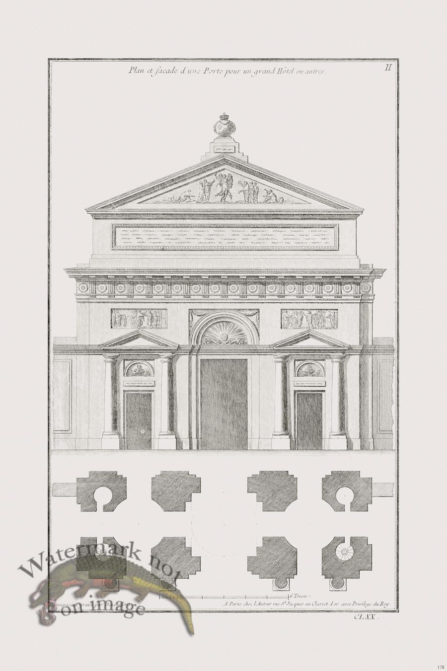 These CFA Edition giclée reproductions are based on plates from Jean-François de Neufforge’s Recueil élémentaire d’architecture, first published in Paris in the mid-18th century. This influential architectural work was widely consulted by architects, designers, and craftsmen and is known for its refined presentation of classical façades, portals, and architectural compositions.
