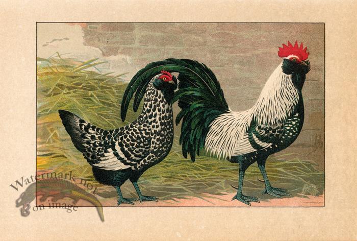 Giclee reproductions of chromolithographs originally from an 1890 poultry book. Printed on acid free cotton rag paper with Archival inks that will last far into the next century. Print Size is 8.5 x 12 inches.