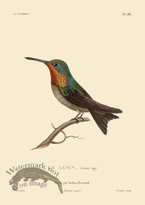 Giclee reproductions of hand colored lithographs of hummingbirds originally published in 1854 in France. Printed on acid free cotton rag paper with Archival inks that will last far into the next century. Print Size is 8.5 x 12 inches.