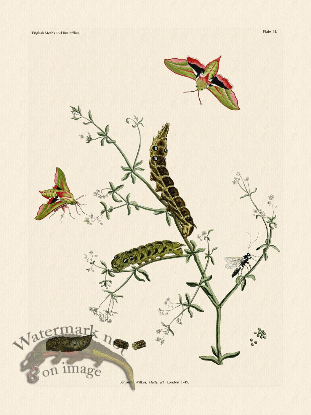 These giclee reproductions were originally done by Benjamin Wilkes around 1749 for The English Moths and Butterlies. The book contained the plants, flowers and fruits wheron they fed and are usually found. Our giclee prints are printed on acid free cotton rag paper using archival ink.