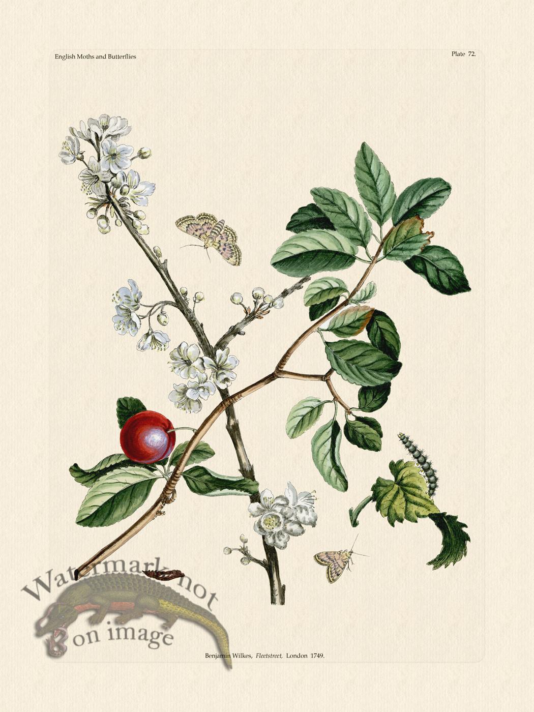 These giclee reproductions were originally done by Benjamin Wilkes around 1749 for The English Moths and Butterlies. The book contained the plants, flowers and fruits wheron they fed and are usually found. Our giclee prints are printed on acid free cotton rag paper using archival ink.