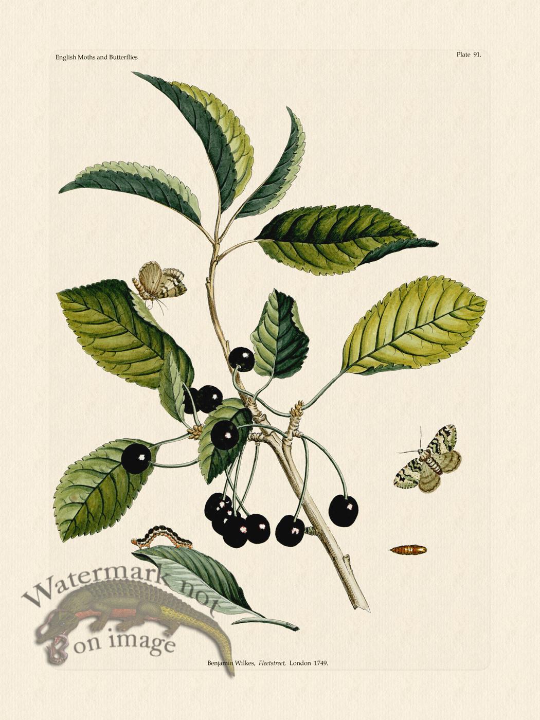 These giclee reproductions were originally done by Benjamin Wilkes around 1749 for The English Moths and Butterlies. The book contained the plants, flowers and fruits wheron they fed and are usually found. Our giclee prints are printed on acid free cotton rag paper using archival ink.