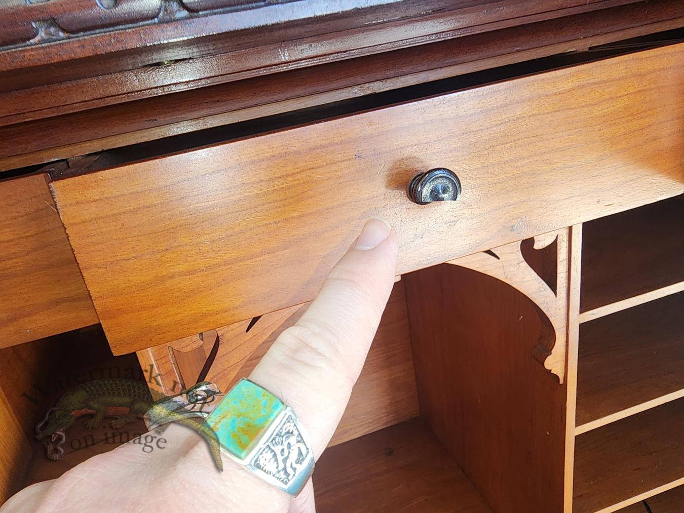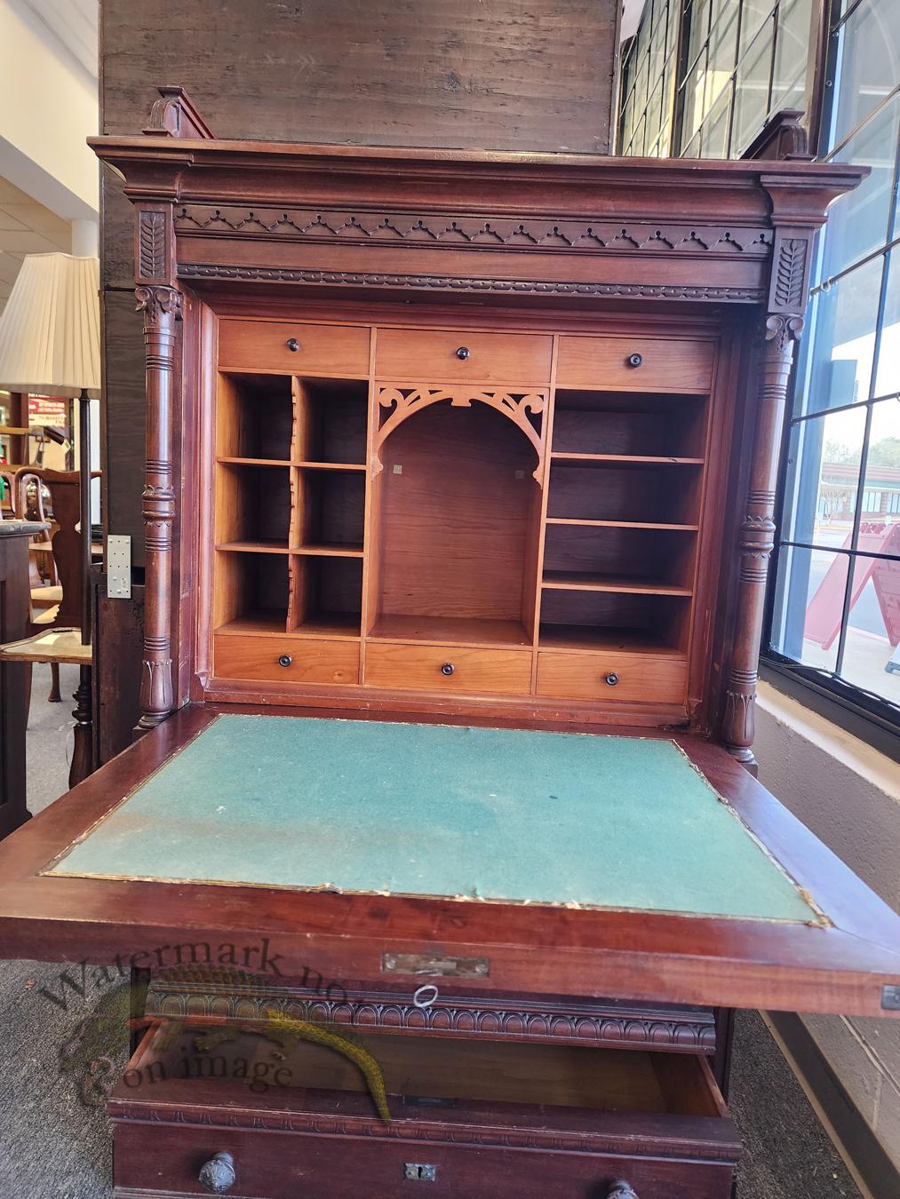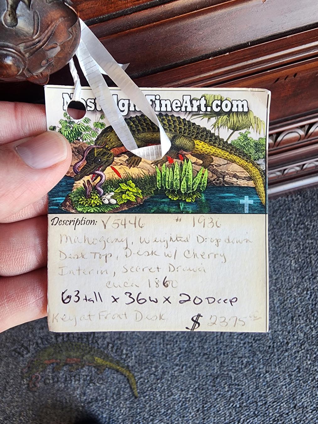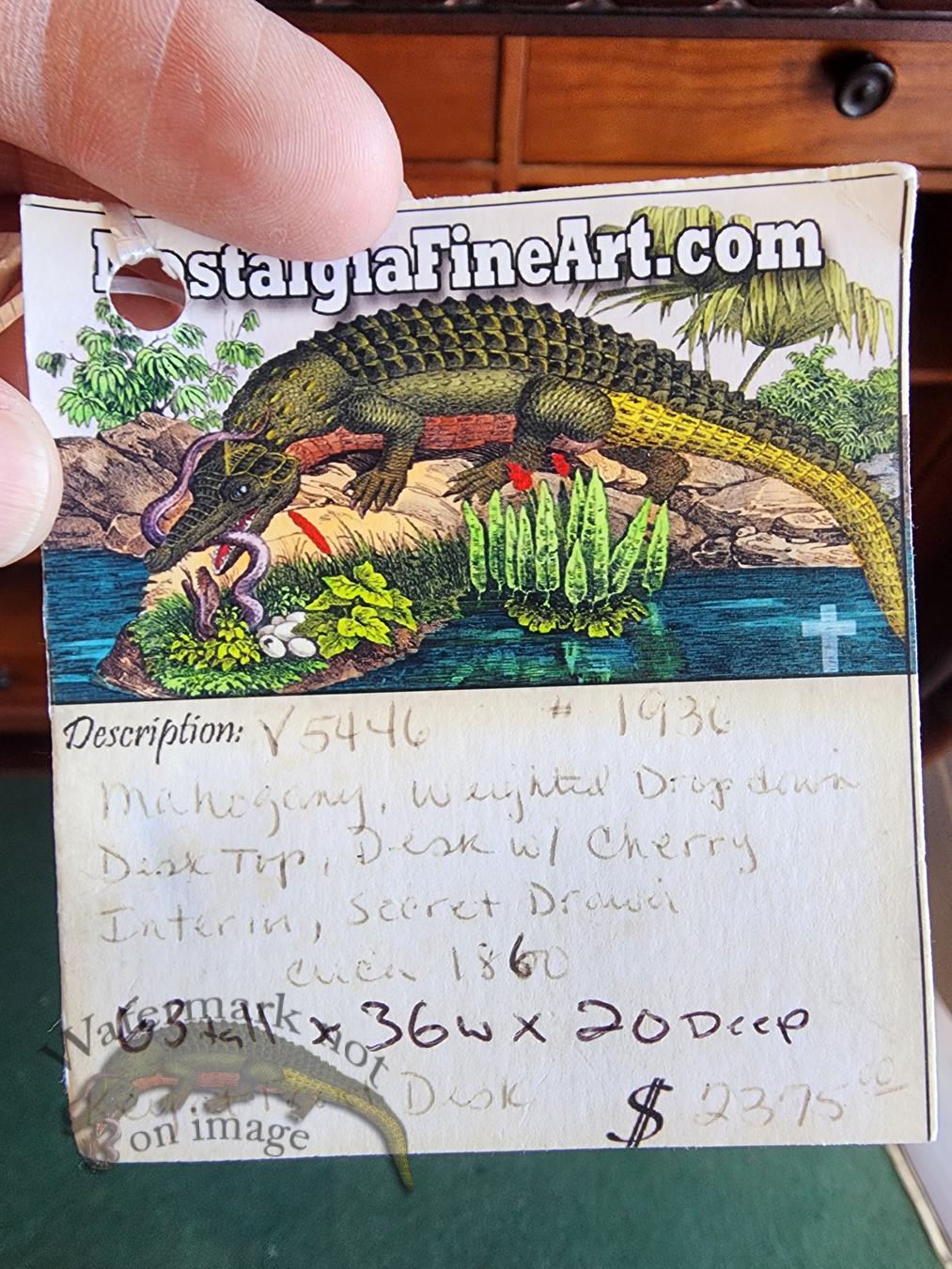 Mahogany weighted drop down desktop desk with a secret drawer circa 1860.