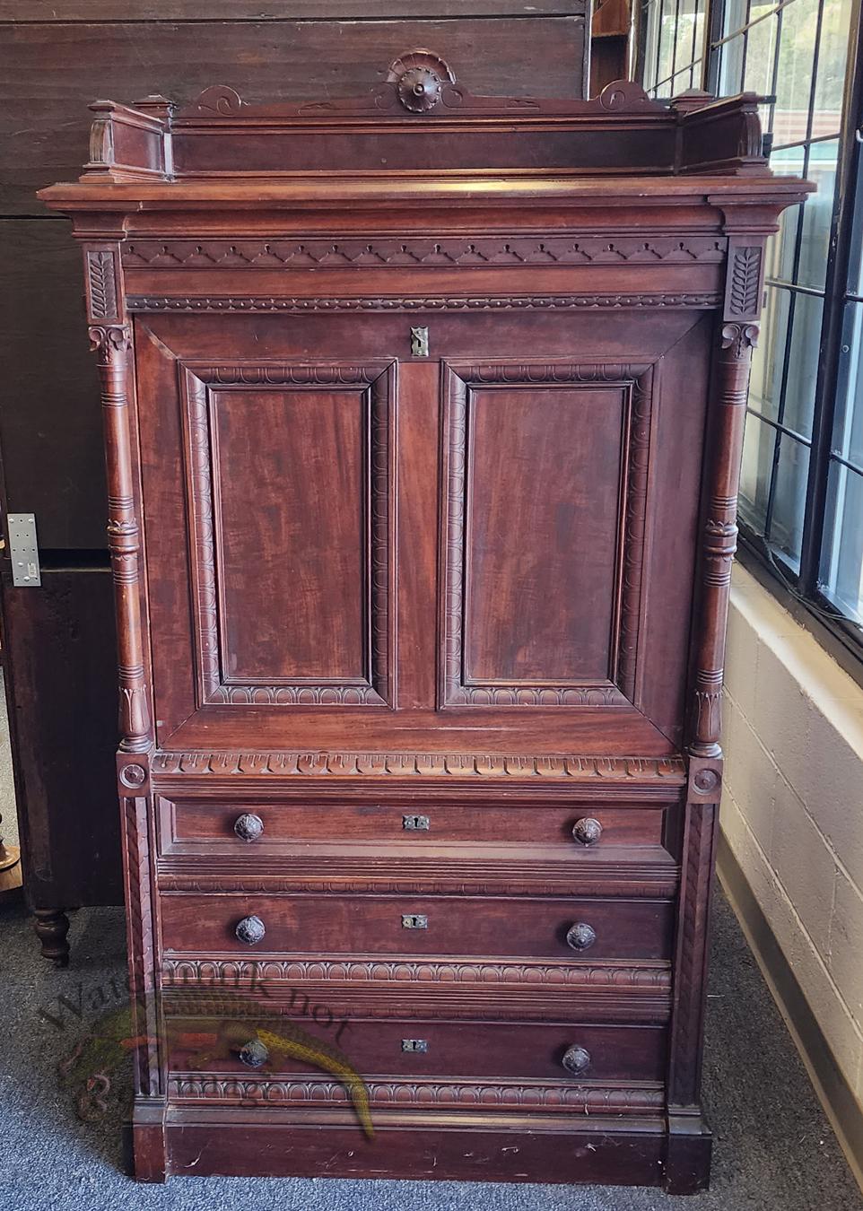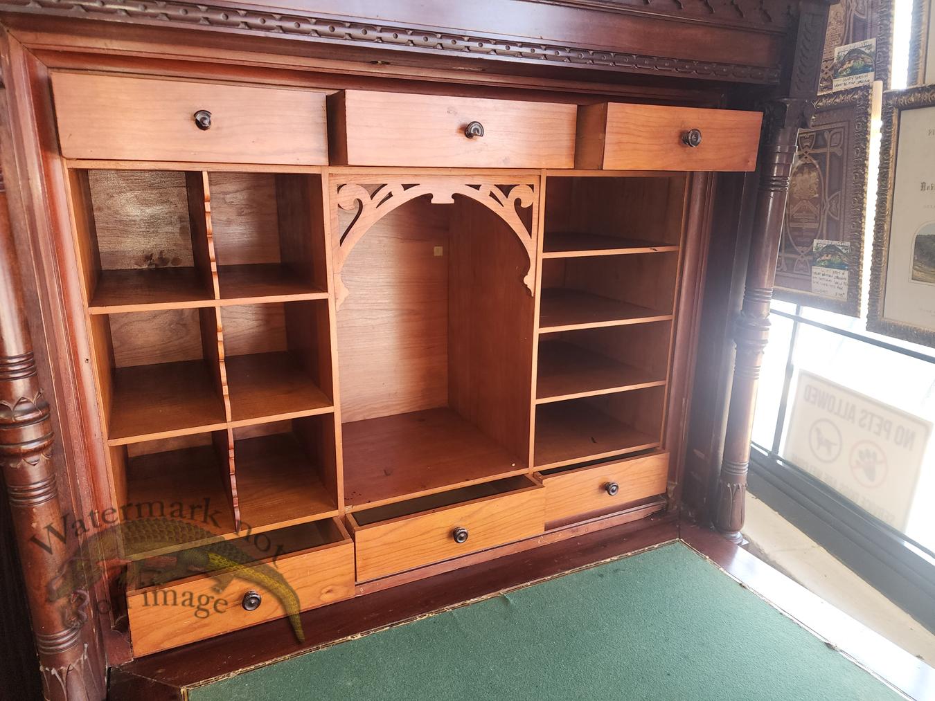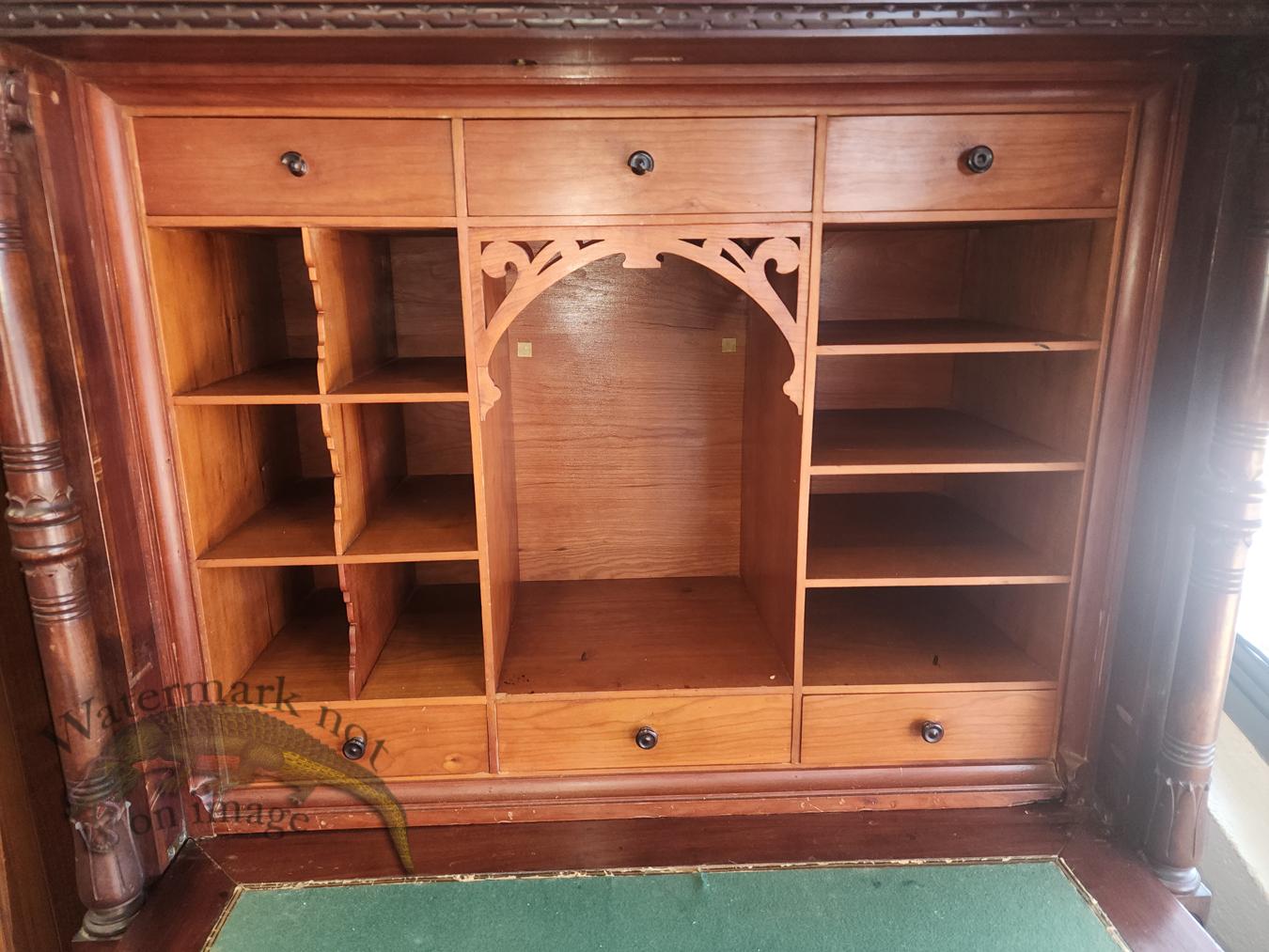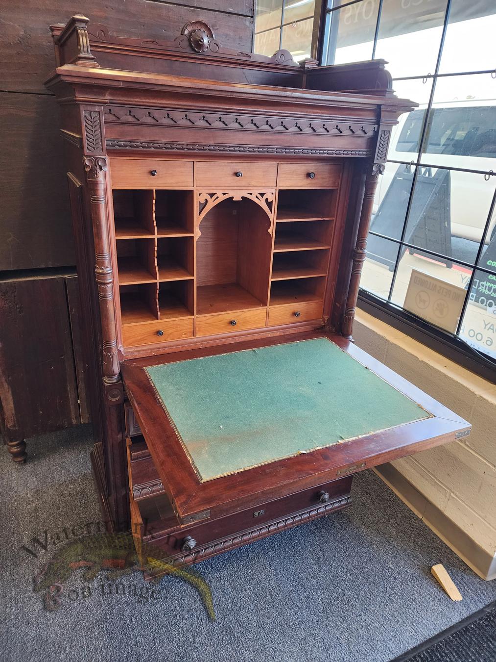 Mahogany weighted drop down desktop desk with a secret drawer circa 1860.