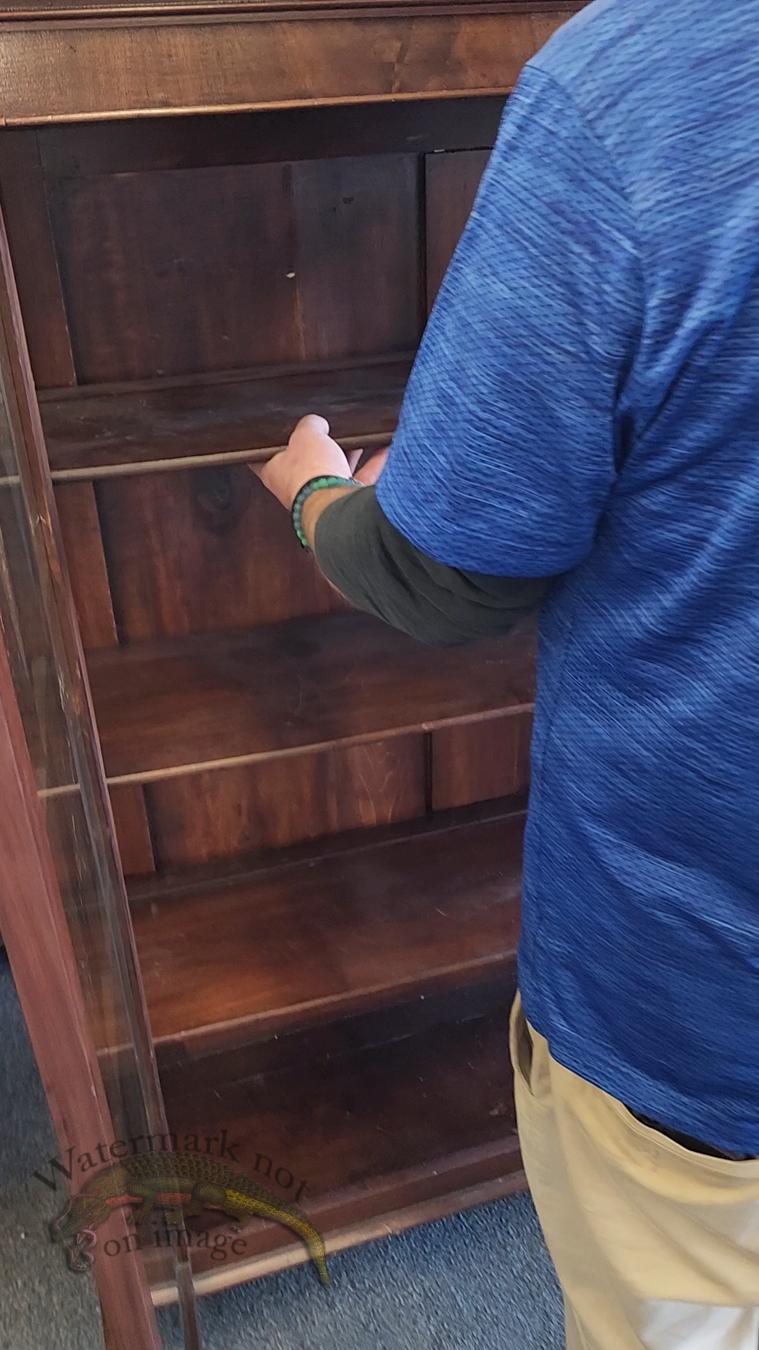 Mahogany 2 door China cabinet from around 1860. This piece of furniture is 62 1/2 inches tall by 50 1/2 inches wide and is 18 1/2 inches deep.
