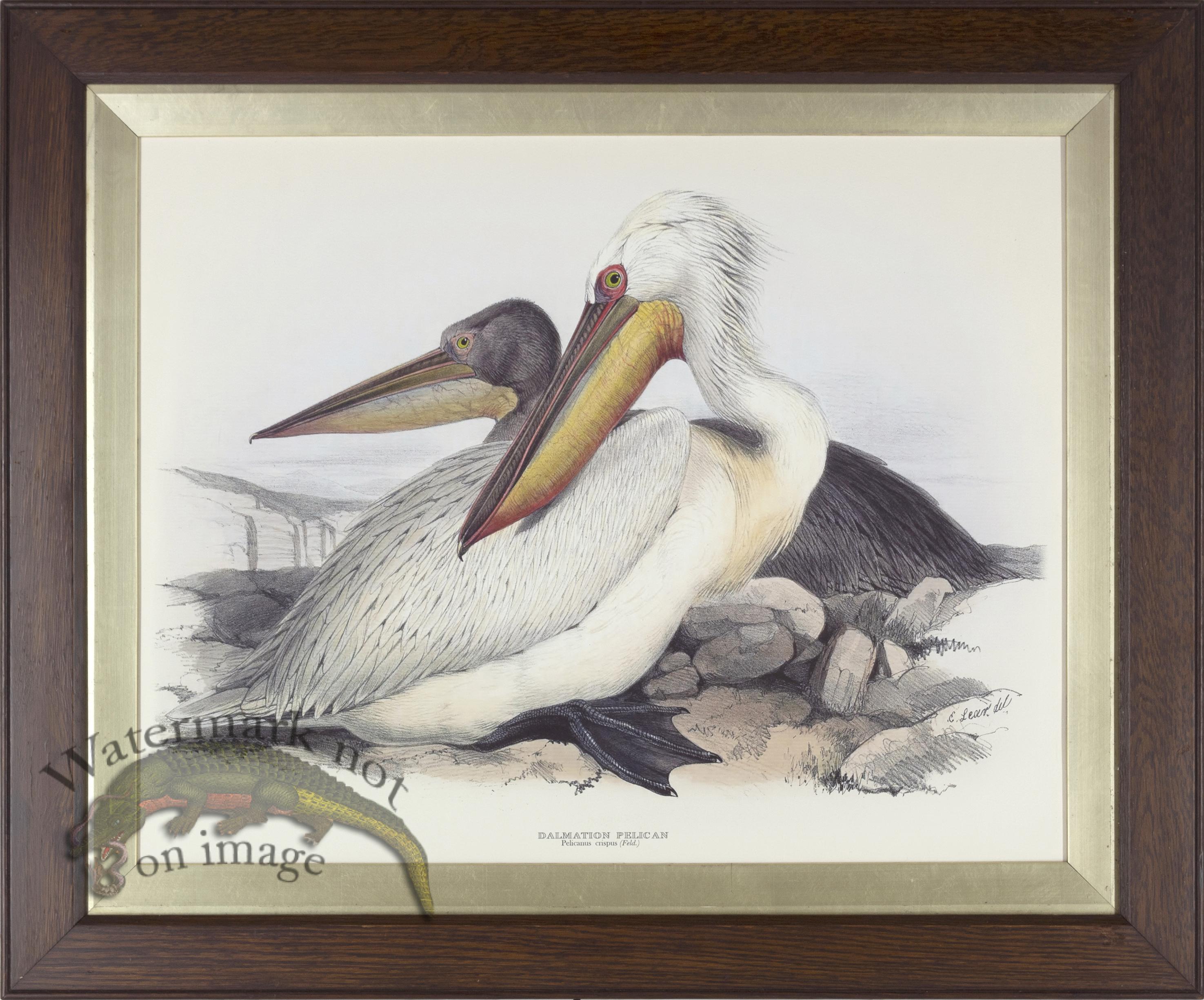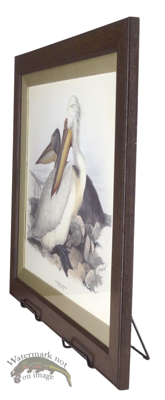 This beautiful John Gould Dalmation Pelican is a giclee reproduction from CFA Editions and is printed on acid free cotton rag paper with archival inks. The frame is from around the 1910s. This is a one of a kind antique frame in awesome condition.
