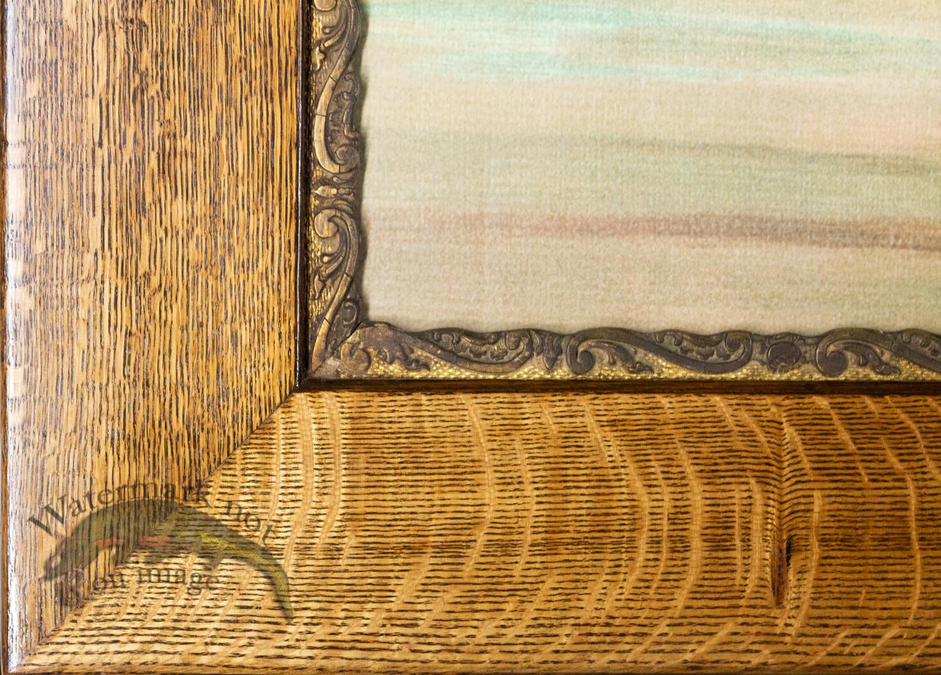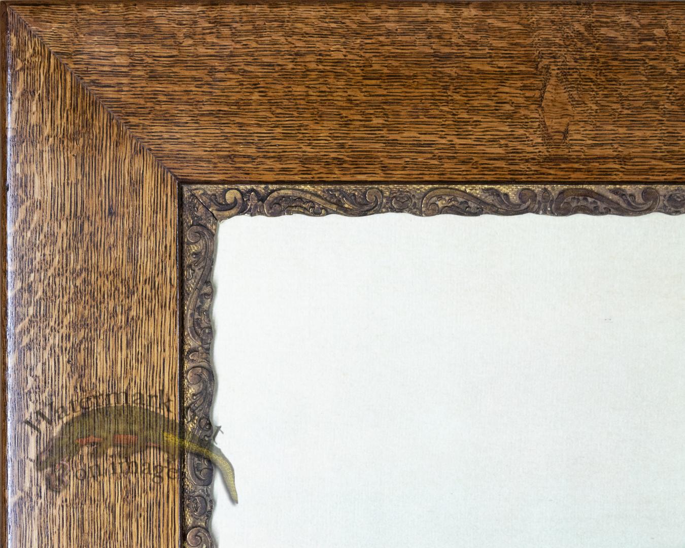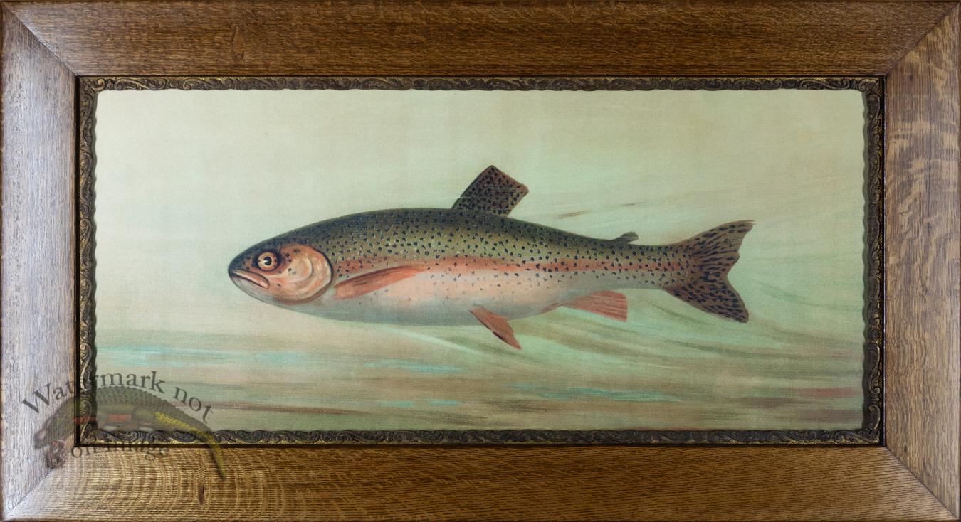 Here we have a beautiful antique quarter sawn oak frame with an ornate gold liner from around 1880. The print is a CFA Edition giclee reproduction of American Game Fish by William Harris.
