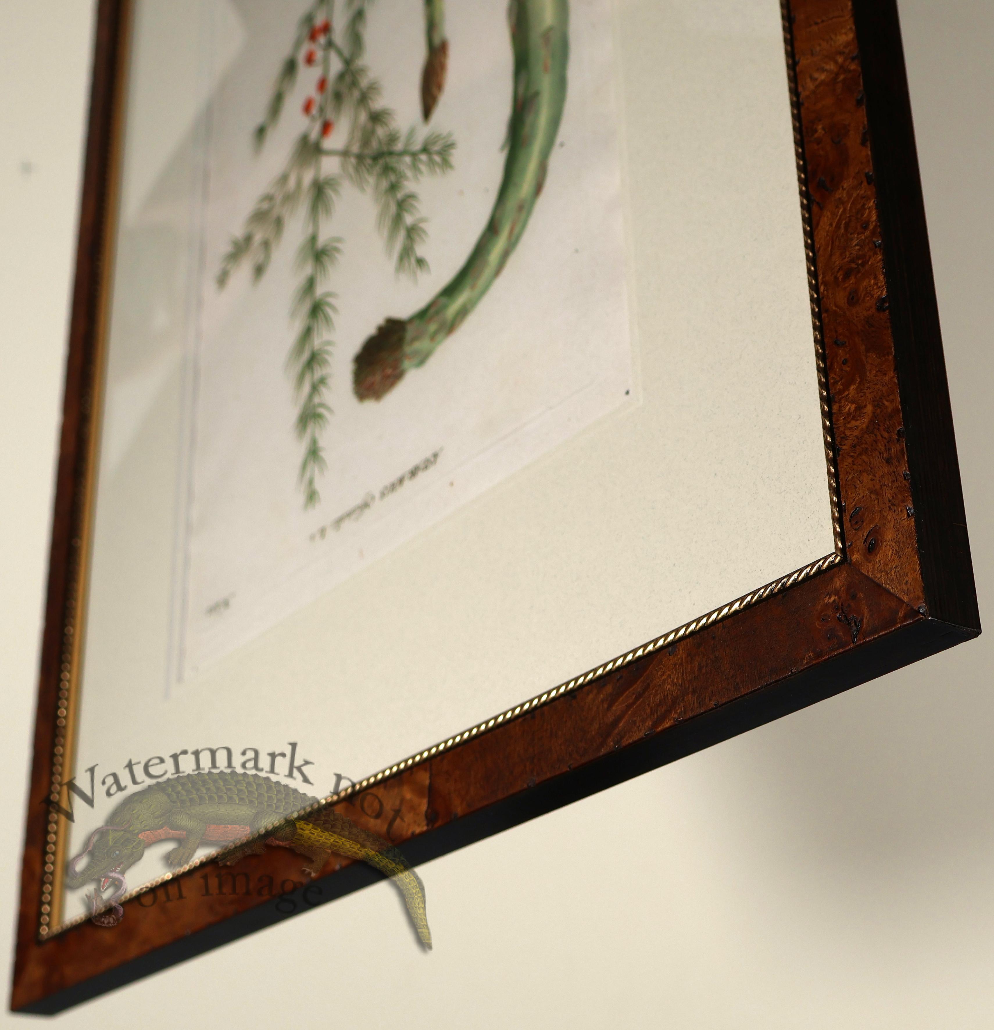 Each engraving is professionally framed with conservation clear glass, double mats and a burl wood frame, complementing the natural subject matter while giving the pieces a warm, classic presence suitable for traditional, transitional, or collected interiors.