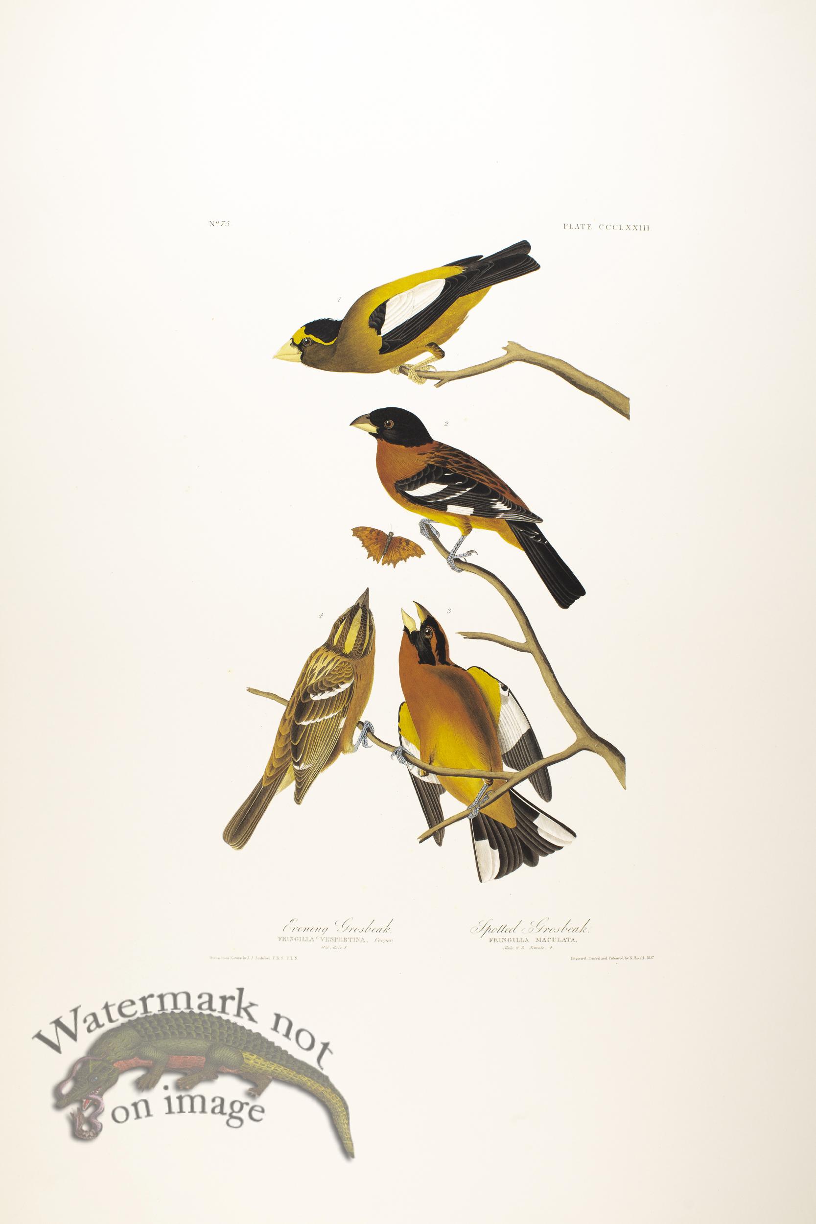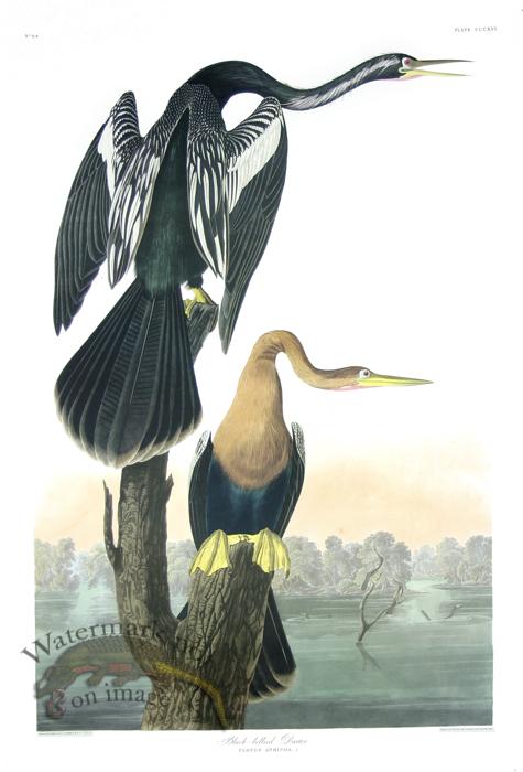 This facsimile edition known as the Abbeville Press Edition of John James Audubons Birds of America was produced from the National Audubon Societys original double elephant folio, issued between 1827 and 1839. Printed and published in japan on watermarked Mohawk Superfine, which is an acid-free paper made exclusively for this edition. The watermark runs down the outside edge of each print and bears the Audubon Societys name, a little bird image and Abbeville Press and is about one inch high and runs the length of the paper. The set was limited to 350 copys and was completed in 1985. The set which we have for sale is number 150. Each print is approximately 39.5 inches by 26.5 inches. A few of the prints have slight flaws which I will try to note in the description adjusted price accordingly. We can also custom frame these images for you.