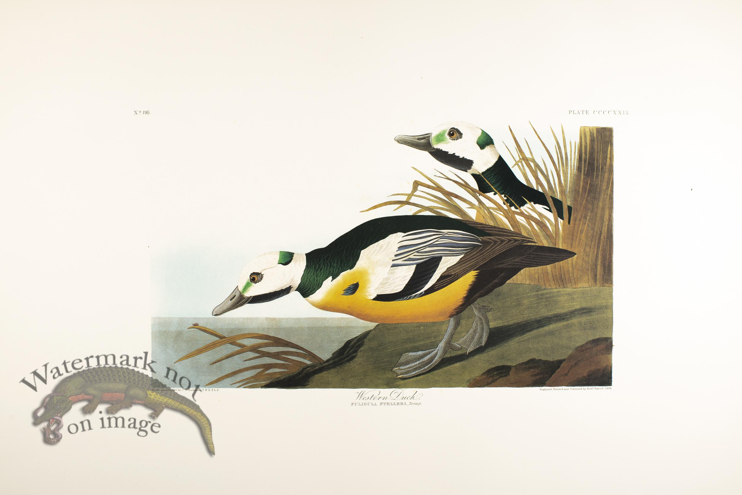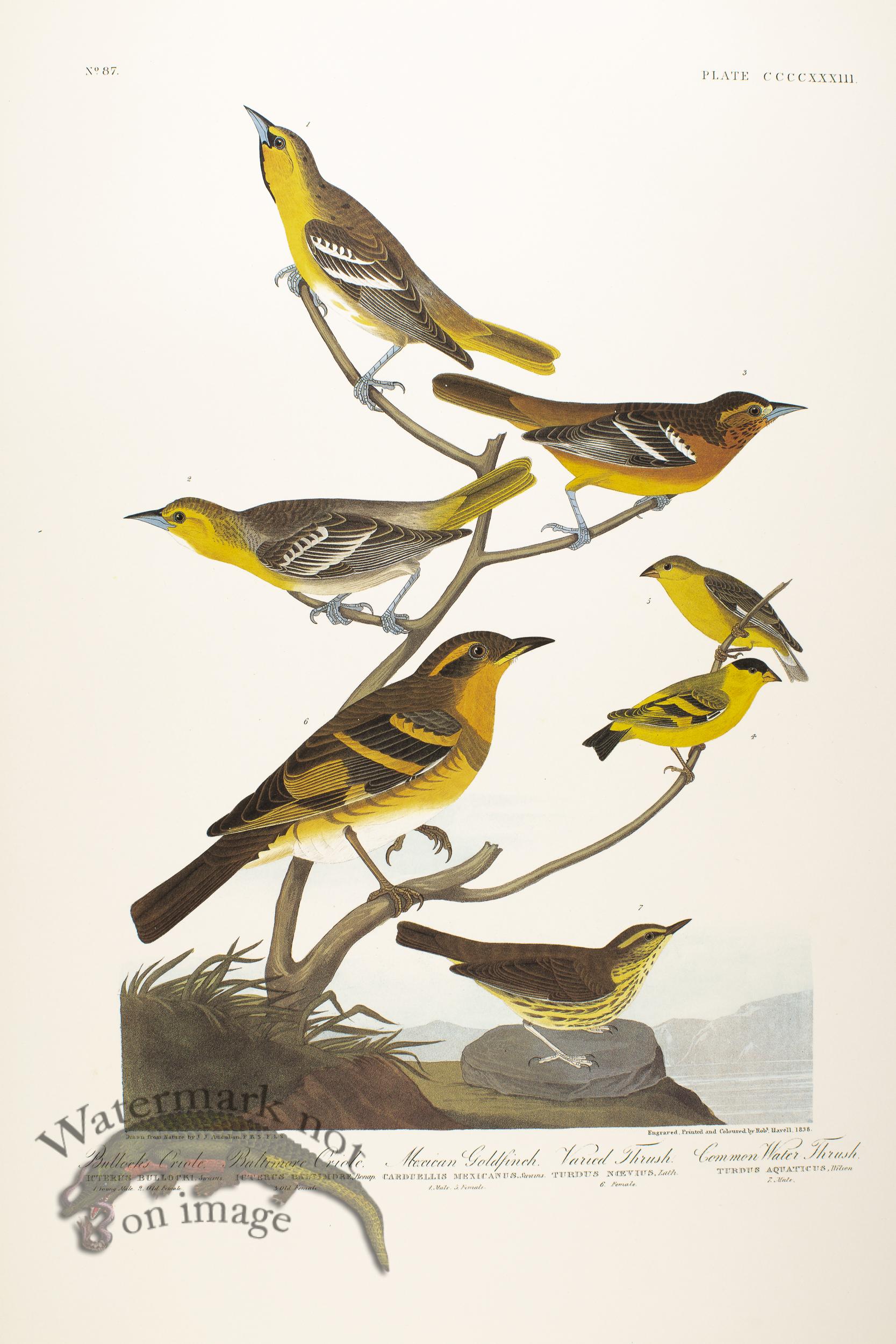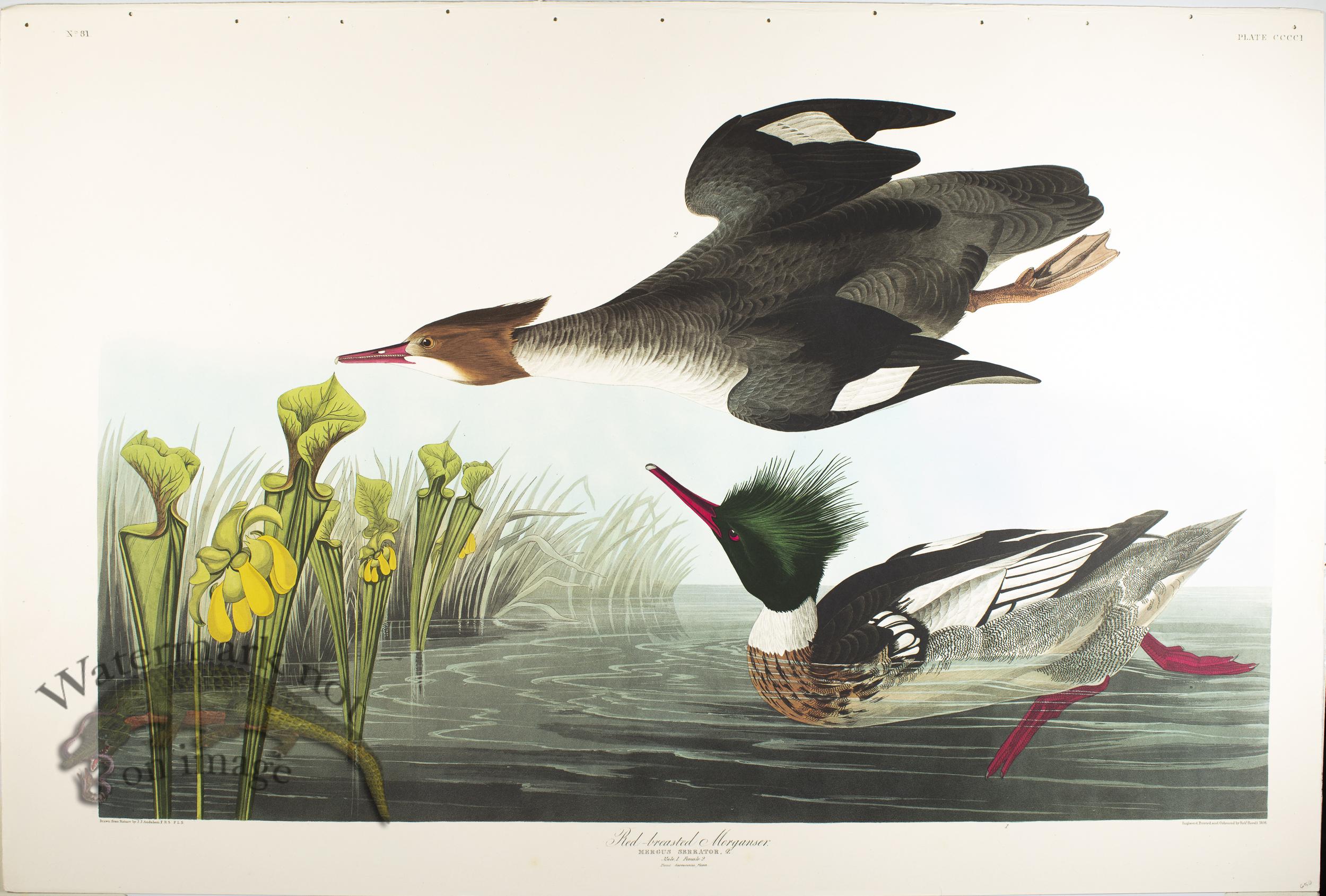 This facsimile edition known as the Abbeville Press Edition of John James Audubons Birds of America was produced from the National Audubon Societys original double elephant folio, issued between 1827 and 1839. Printed and published in japan on watermarked Mohawk Superfine, which is an acid-free paper made exclusively for this edition. The watermark runs down the outside edge of each print and bears the Audubon Societys name, a little bird image and Abbeville Press and is about one inch high and runs the length of the paper. The set was limited to 350 copys and was completed in 1985. The set which we have for sale is number 150. Each print is approximately 39.5 inches by 26.5 inches. A few of the prints have slight flaws which I will try to note in the description adjusted price accordingly. We can also custom frame these images for you.