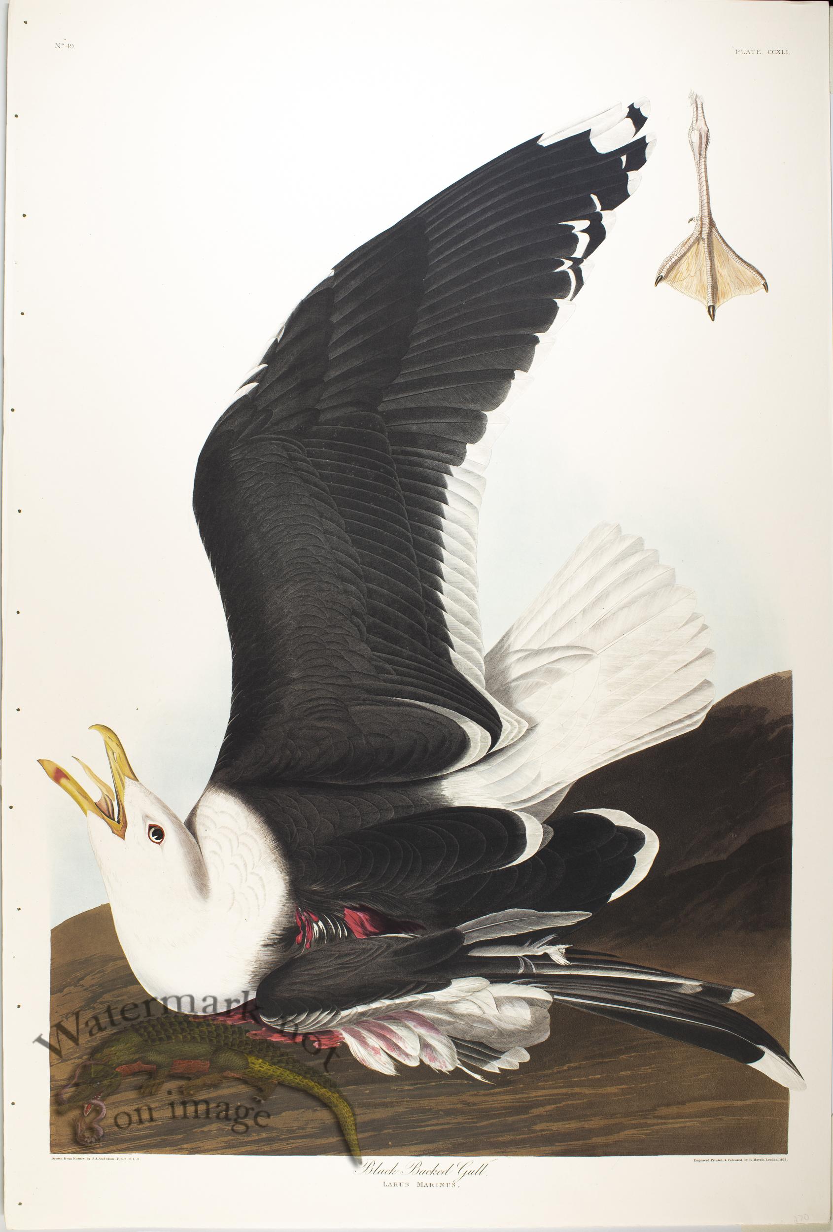 This facsimile edition known as the Abbeville Press Edition of John James Audubons Birds of America was produced from the National Audubon Societys original double elephant folio, issued between 1827 and 1839. Printed and published in japan on watermarked Mohawk Superfine, which is an acid-free paper made exclusively for this edition. The watermark runs down the outside edge of each print and bears the Audubon Societys name, a little bird image and Abbeville Press and is about one inch high and runs the length of the paper. The set was limited to 350 copys and was completed in 1985. The set which we have for sale is number 150. Each print is approximately 39.5 inches by 26.5 inches. A few of the prints have slight flaws which I will try to note in the description adjusted price accordingly. We can also custom frame these images for you.