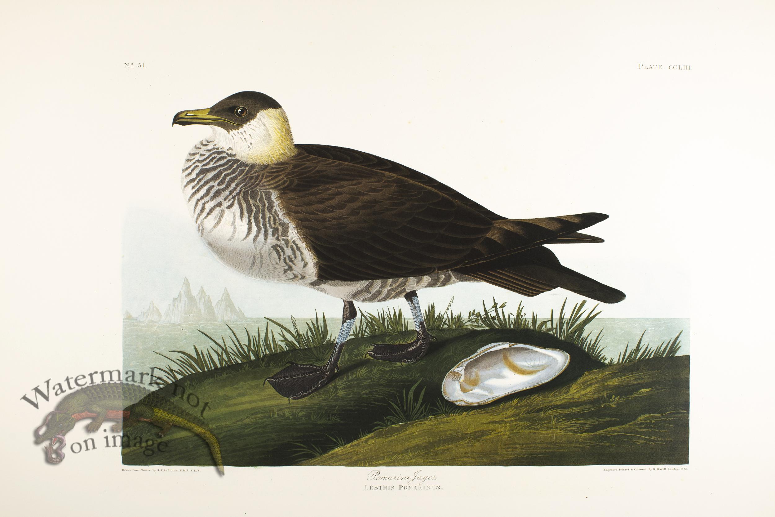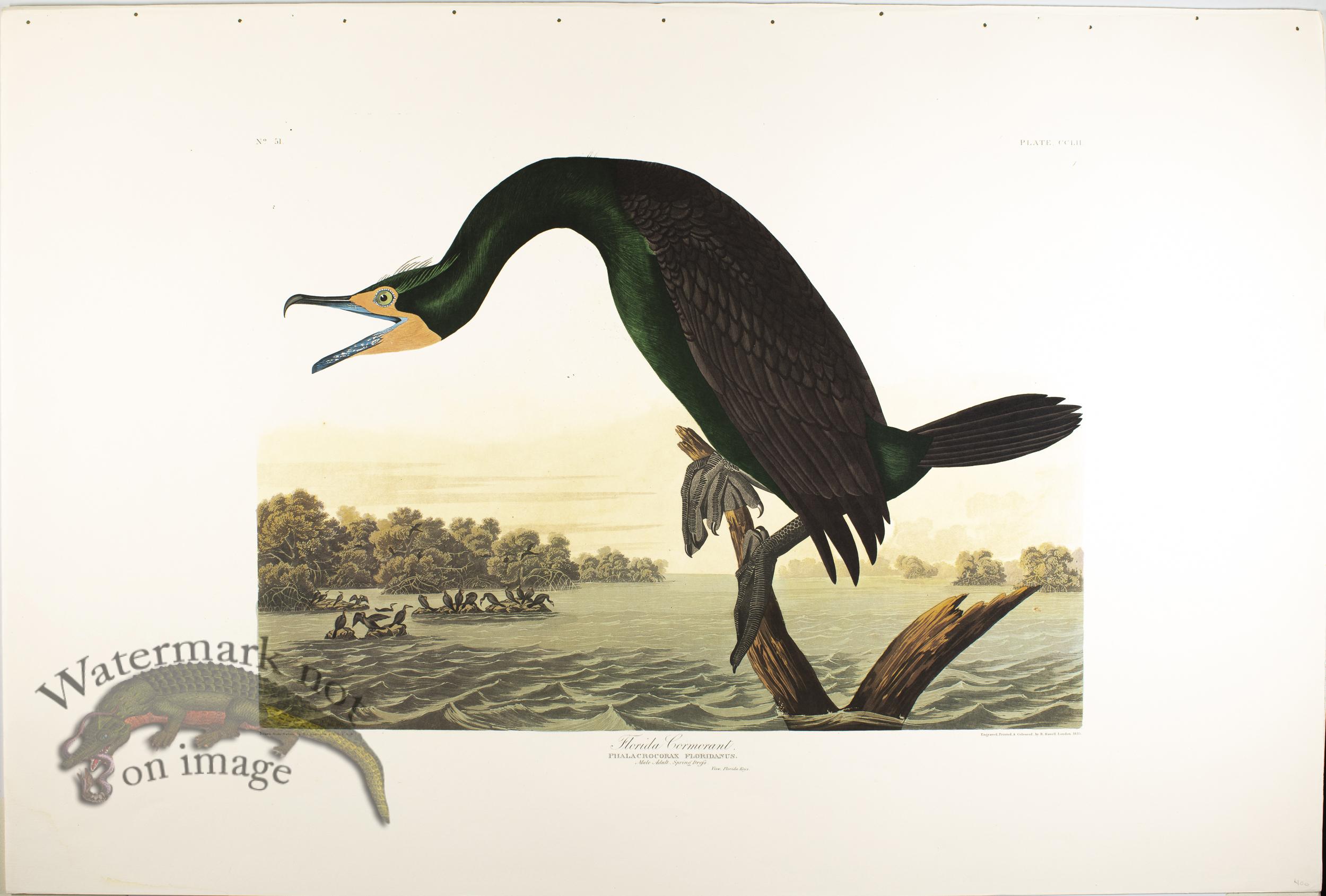 This facsimile edition known as the Abbeville Press Edition of John James Audubons Birds of America was produced from the National Audubon Societys original double elephant folio, issued between 1827 and 1839. Printed and published in japan on watermarked Mohawk Superfine, which is an acid-free paper made exclusively for this edition. The watermark runs down the outside edge of each print and bears the Audubon Societys name, a little bird image and Abbeville Press and is about one inch high and runs the length of the paper. The set was limited to 350 copys and was completed in 1985. The set which we have for sale is number 150. Each print is approximately 39.5 inches by 26.5 inches. A few of the prints have slight flaws which I will try to note in the description adjusted price accordingly. We can also custom frame these images for you.