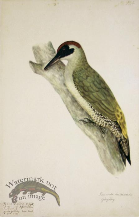 124 Swedish Birds . Picus Viridis, European Green Woodpeck.Male