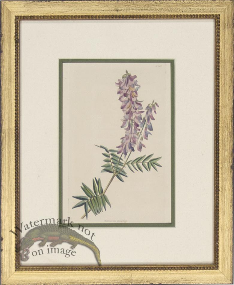 Hand colored copper plate engraving from 1813 by Conrad Loddiges. This antique print has archival framing with a distresses Italian gold .85 inch wide moulding. Framed 9.25 by 11.25 inches.