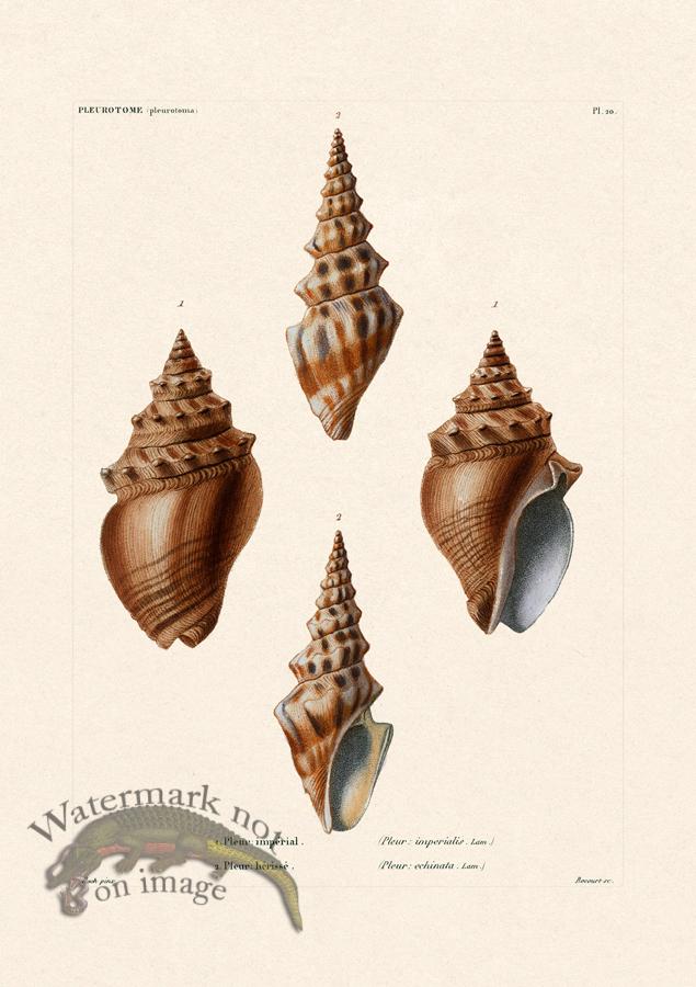 Giclee reproductions of Sea Shells. These beautiful shells were originally published in the 1850s in France . Printed on sommerset velvet acid free cotton rag paper with archival inks. 12 inches by 17 inches.