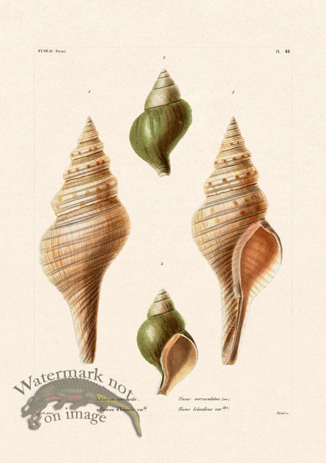 Giclee reproductions of Sea Shells. These beautiful shells were originally published in the 1850s in France . Printed on sommerset velvet acid free cotton rag paper with archival inks. 12 inches by 17 inches.