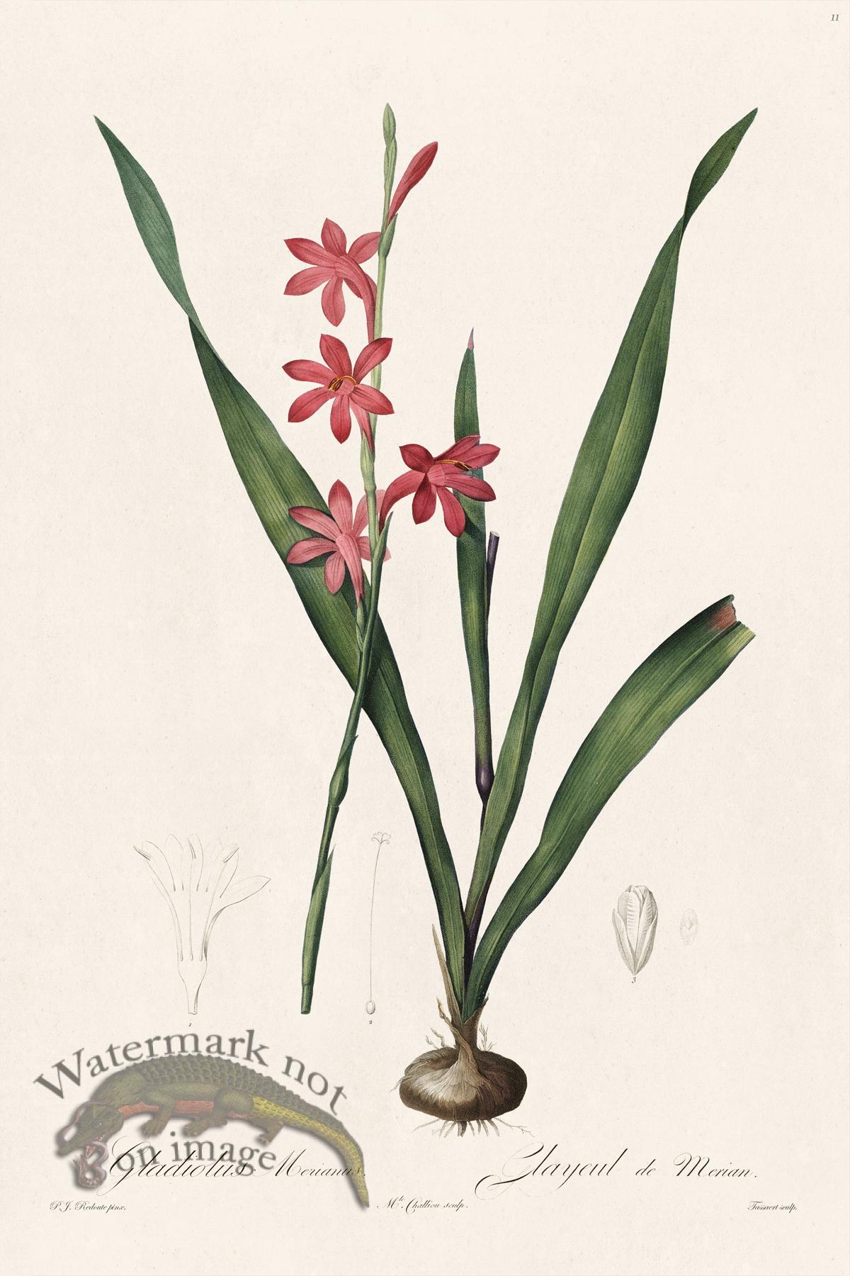Giclee Reproductions of Les Liliacées by Pierre Joseph Redoute(1759-1840) originally published from 1802-1816. This set of botanical prints is considered one of the greatest ever produced. The original print was a stipple engraving which was made up of little tiny dots in the engraved plate and after printing(or pressing the inked plate on the paper) the image was hand colored with water color. Digitally remastered to fix aging and defects to make them look as they did in the 1820s. This wonderful series is printed in the highest quality possible on acid free cotton rag paper with archival inks.