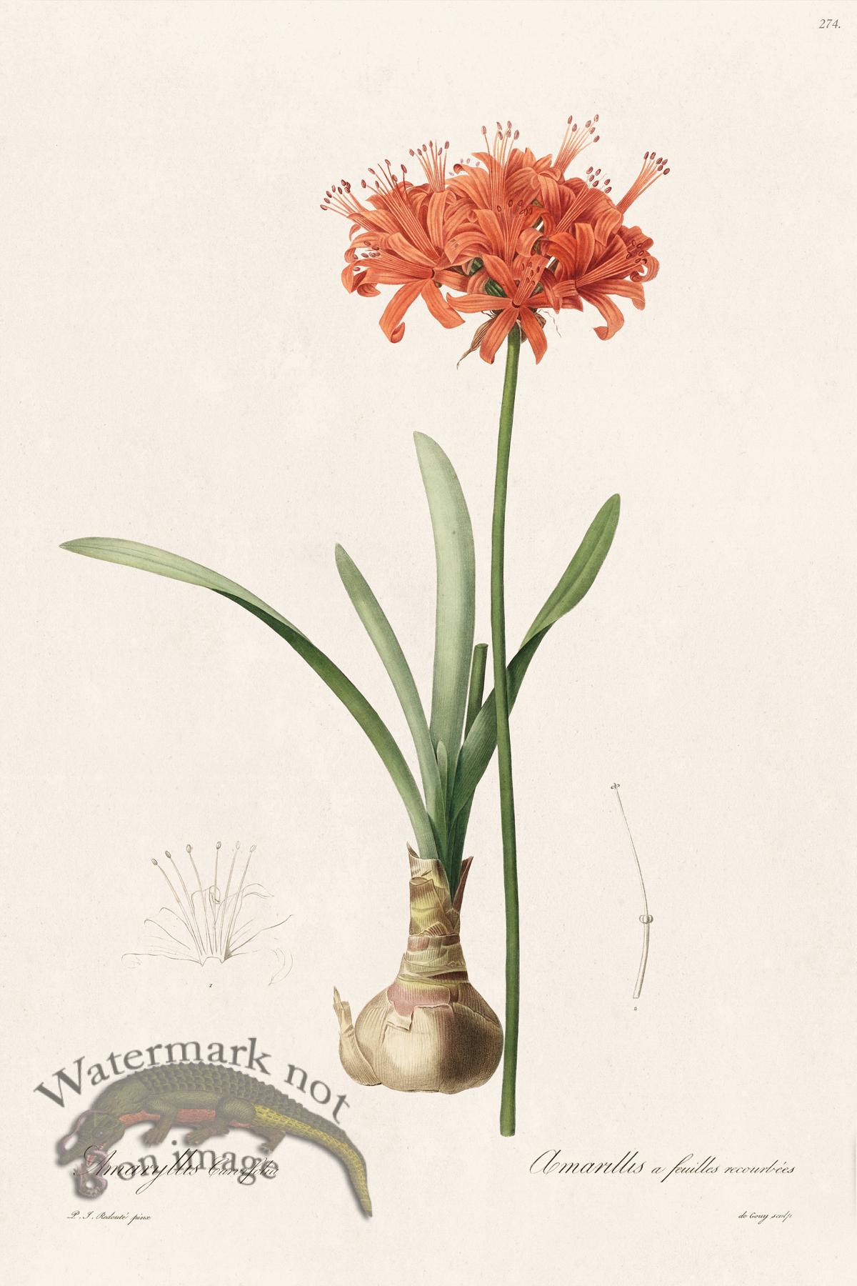 Giclee Reproductions of Les Liliacées by Pierre Joseph Redoute(1759-1840) originally published from 1802-1816. This set of botanical prints is considered one of the greatest ever produced. The original print was a stipple engraving which was made up of little tiny dots in the engraved plate and after printing(or pressing the inked plate on the paper) the image was hand colored with water color.  Digitally remastered to fix aging and defects to make them look as they did in the 1820s. This wonderful series is printed in the highest quality possible on acid free cotton rag paper with archival inks.