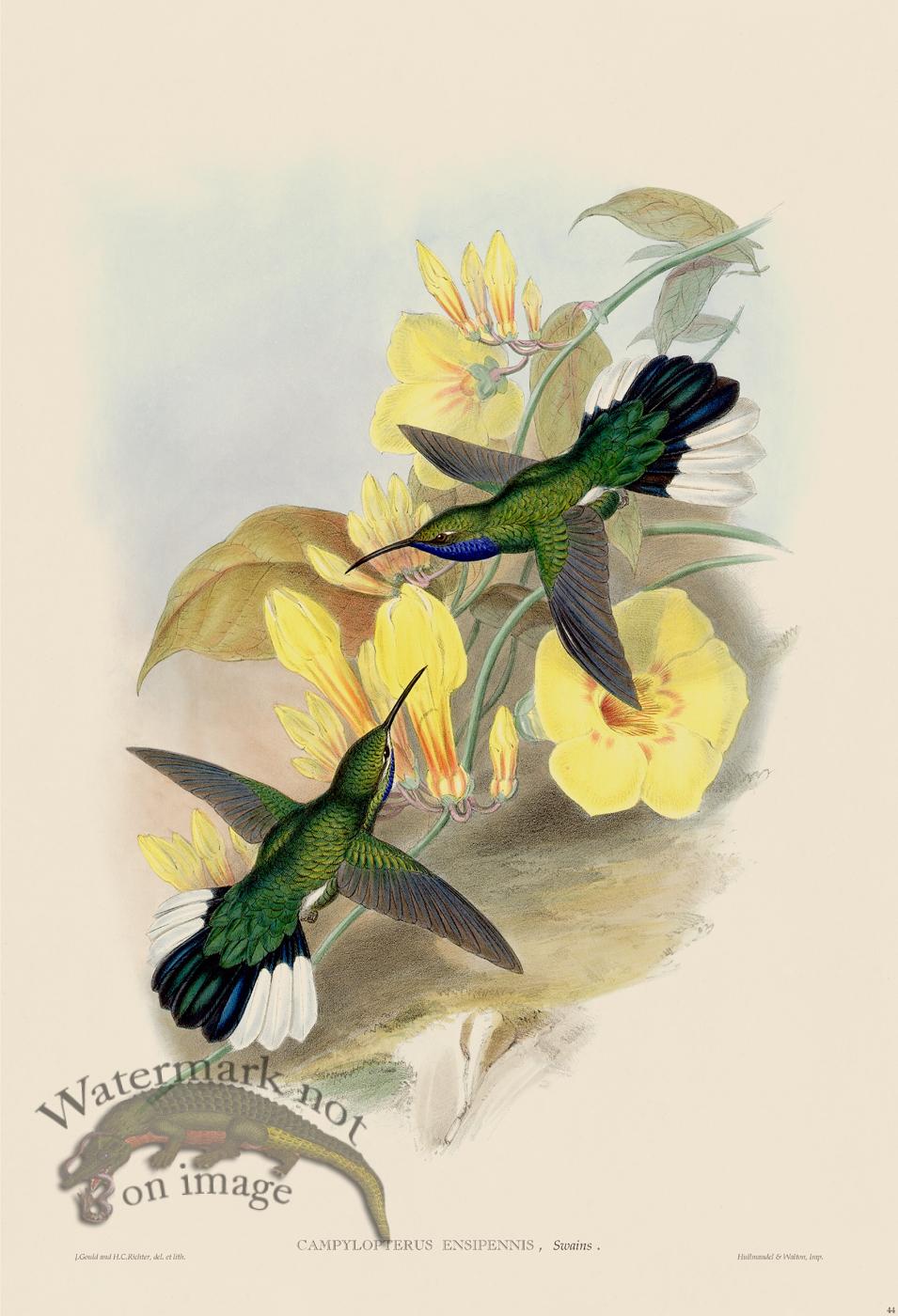 Giclee reproductions from John Gould's A Monograph of the Trochilidae, or Family of Hummingbirds. Printed on acid free cotton rag paper with archival inks that have a lightfastness of over 160 years which means they will not fade for a long time.