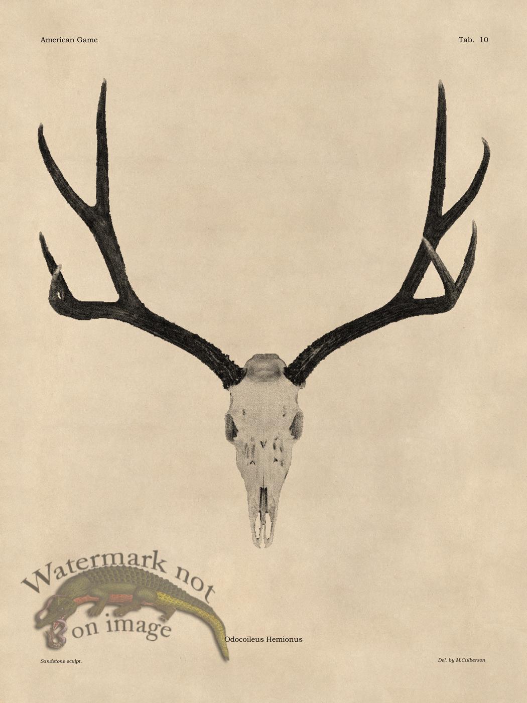 A series of American and European Big Game Skulls. Designed by M. Culberson to appear as stone lithographs from the 1880s. Printed on Acid Free cotton rag paper with archival inks.