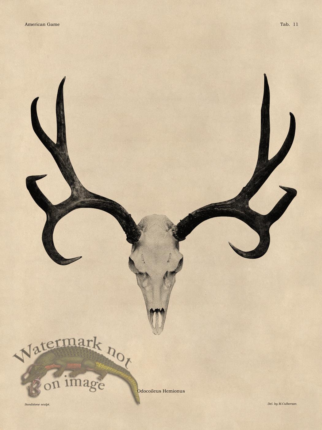 A series of American and European Big Game Skulls. Designed by M. Culberson to appear as stone lithographs from the 1880s. Printed on Acid Free cotton rag paper with archival inks.